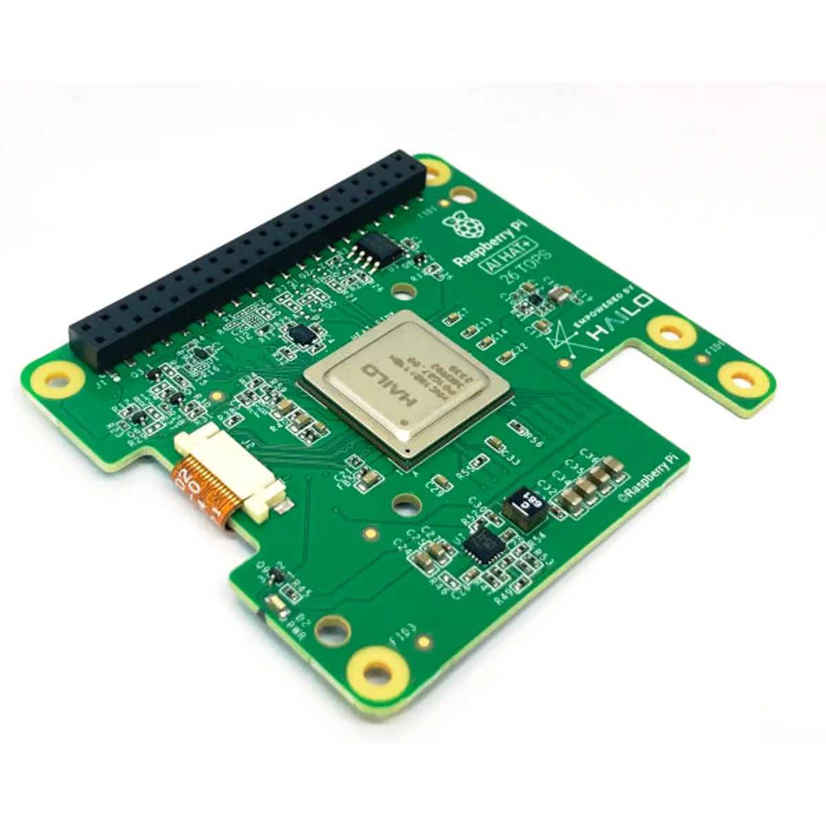 O Raspberry Pi AI HAT+ é uma placa add-on com um acelerador de IA Hailo integrado, concebida para o Raspberry Pi 5. Oferece uma solução acessível, económica e eficiente, em termos de energia, para integrar IA de alto desempenho. Permite explorar aplicações como controlo de processos, segurança, automação residencial e robótica.
