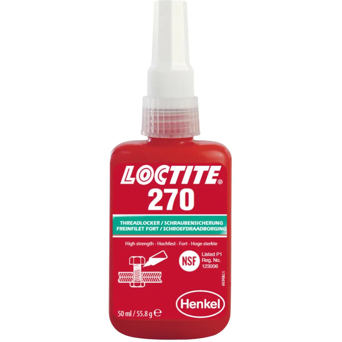 LOCTITE® 270 é um fixador de roscas líquido de alta resistência apropriado para todas as ferragens metálicas, incluindo superfícies de aço inoxidável, alumínio, galvanizadas e revestimentos sem crómio. Tolera contaminações leves de óleos industriais, por exemplo, óleos de motores, óleos anticorrosão e fluidos de corte.