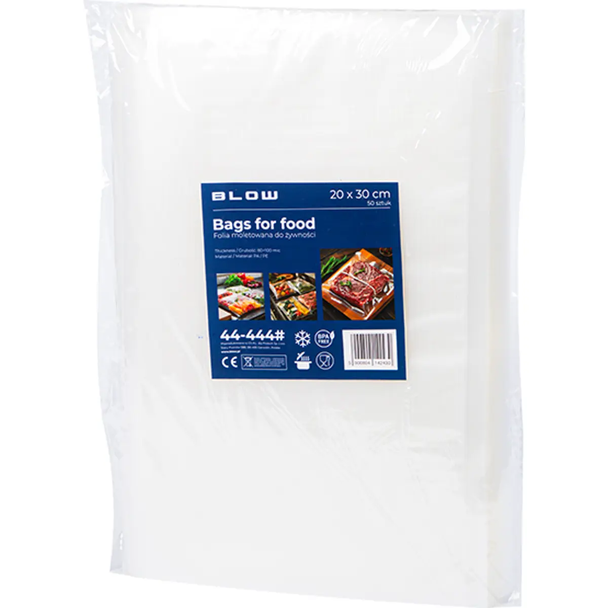 Conjunto de sacos de plástico PA/PE (sem BPA) para embalamento de produtos alimentares em vácuo.