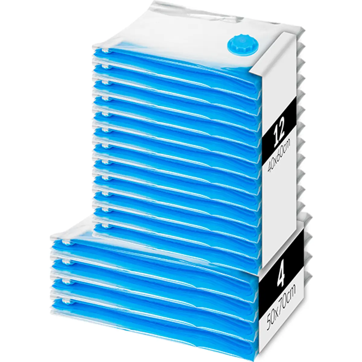 Economize espaço no guarda-roupa e na mala de viagem usando estes sacos de vácuo de alta qualidade! Esta é a solução ideal para quem pretende organizar a roupa, toalhas, lençóis e outros têxteis, protegendo-os do pó, da humidade e da sujidade.