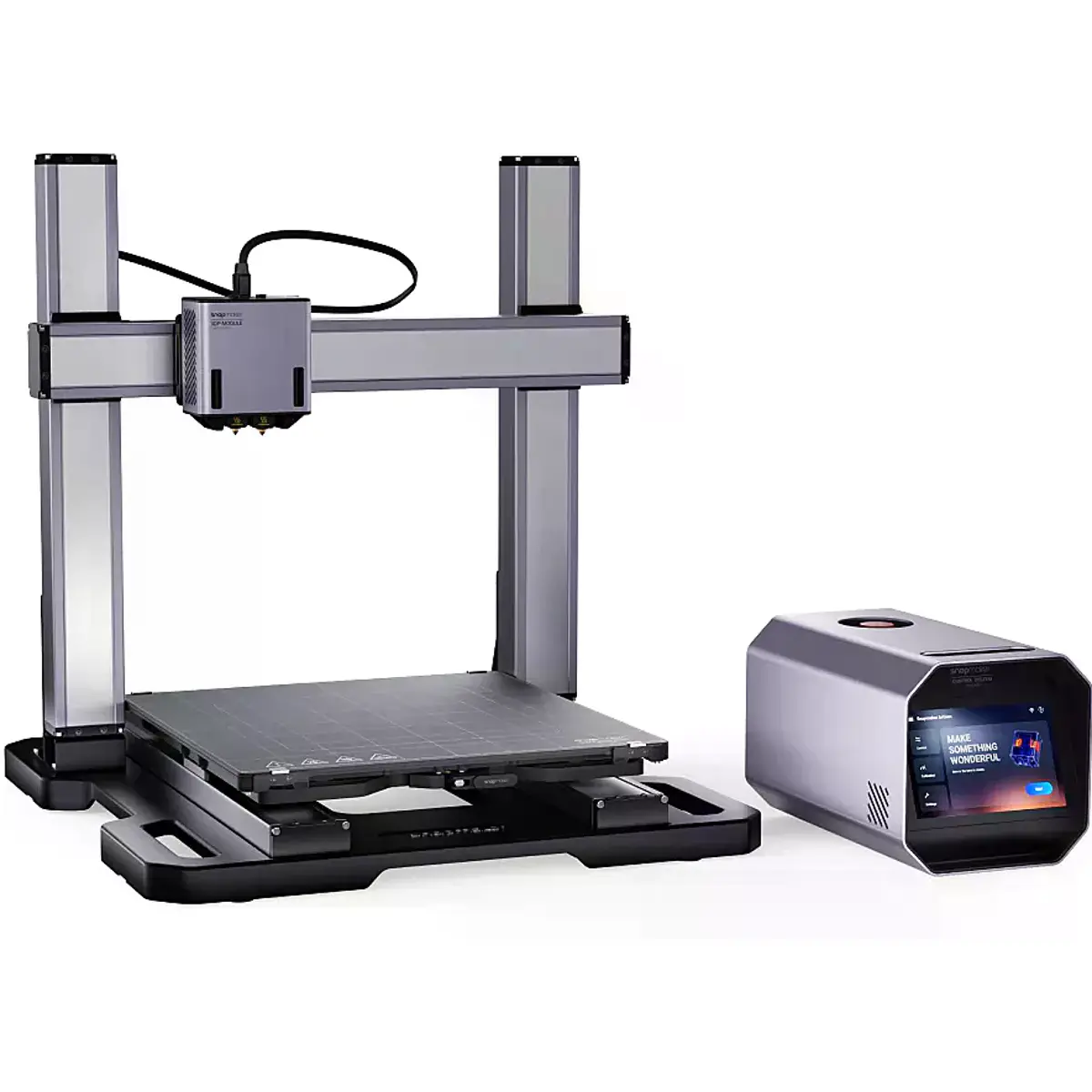 O design robusto, em metal, com guias lineares de alta precisão, permite alta estabilidade e precisão durante o processo de impressão. Esta versão da Snapmaker inclui ainda um ecrã tátil de 7 polegadas, facilitando o controlo e a calibração da máquina, tornando-a adequada para principiantes e utilizadores avançados.