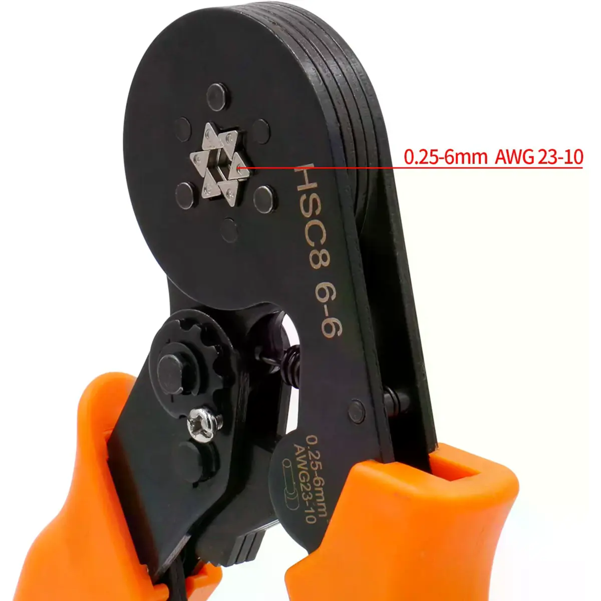 HSC8 6-6 - Alicate de cravar ponteiras autoajustável 0.25...6mm² - hexagonal [6 lâminas]
