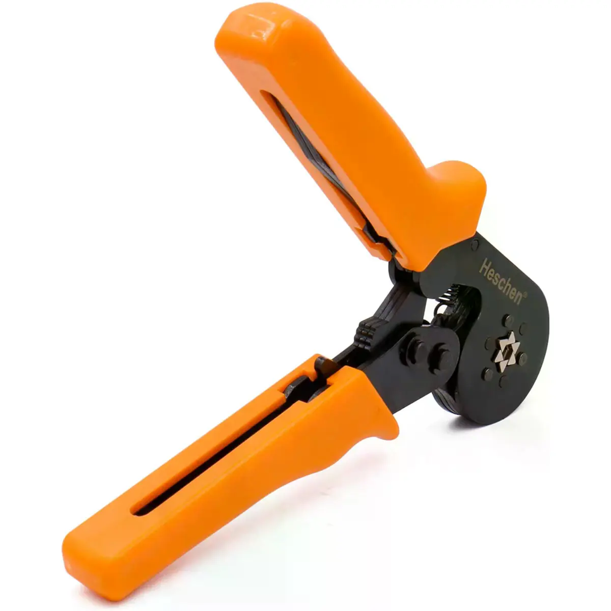Ajusta-se automaticamente ao tamanho desejado da ponteira. Inserção da ponteira pelo lado da ferramenta, com vários perfis de cravamento. Equipado com 6 lâminas, o que proporciona um formato mais arredondado (hexagonal) à ponteira cravada, em comparação com os alicates comuns de 4 lâminas, que deixam a cravação quadrada. Acabamento brunido ou cromado; aço de mola especialmente endurecido.