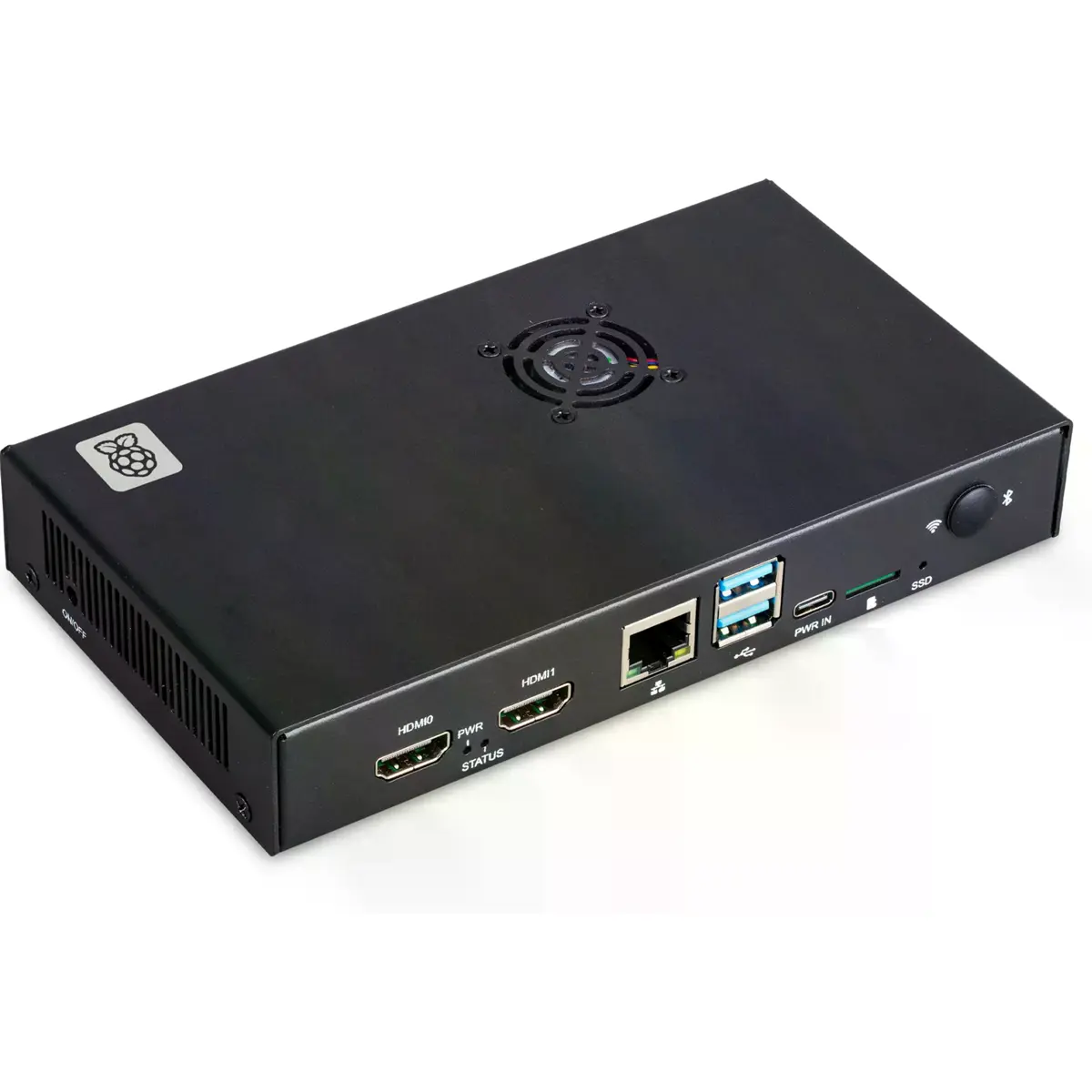Oferece espaço para acessórios conectados à placa IO, como um SSD M.2 ou um PoE+ HAT+. A caixa inclui ranhuras para permitir a ligação de câmaras CSI-2 ou ecrãs DSI e conta com uma ventoinha integrada controlável para suportar a regulação térmica em aplicações de maior potência.