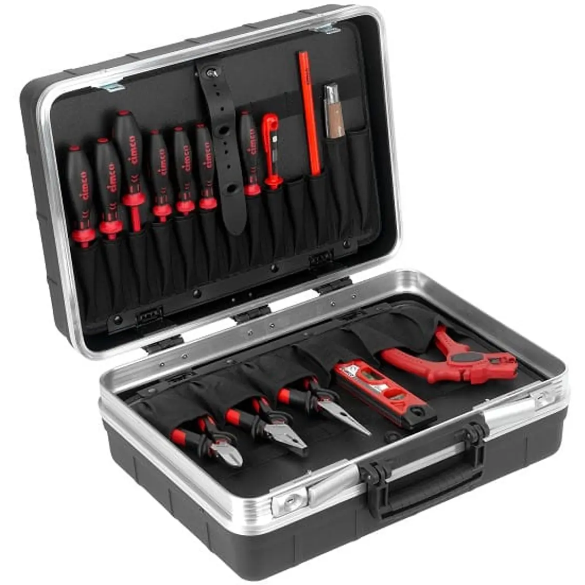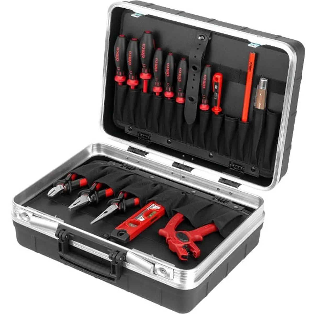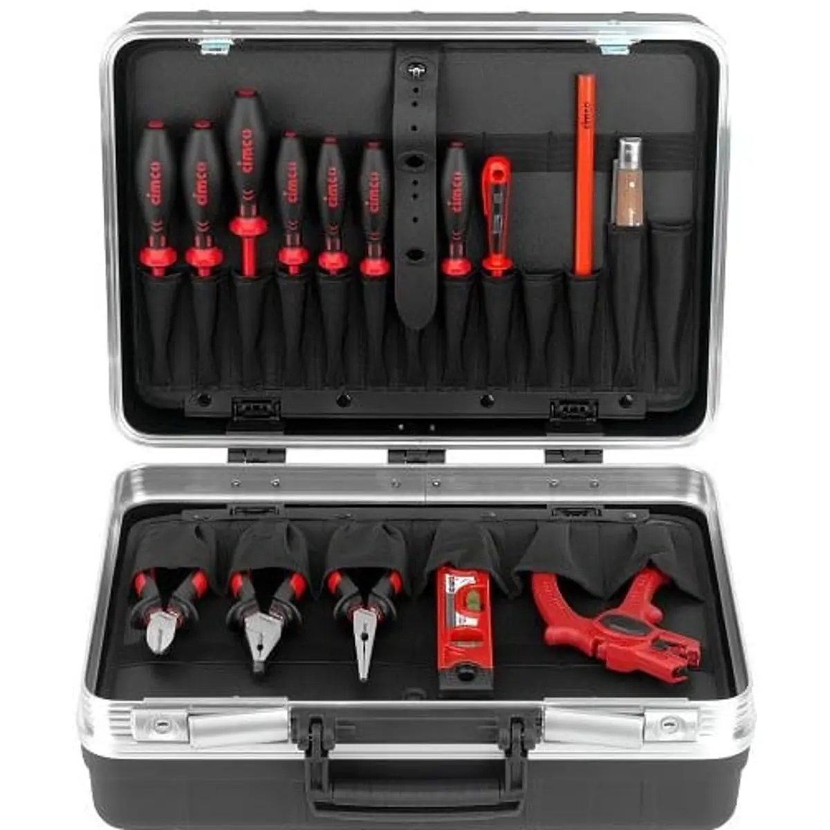 Este Kit de ferramentas com mala rígida foi especialmente desenhado para o qualquer eletricista Portugues. Constitui a base ideal para qualquer instalador electrotécnico. A mala tem fechaduras que permitem facilmente proteger as suas ferramentas durante o transporte. Sistema de abertura com tranca para se manter na posição aberta, ideal para terrenos irregulares.