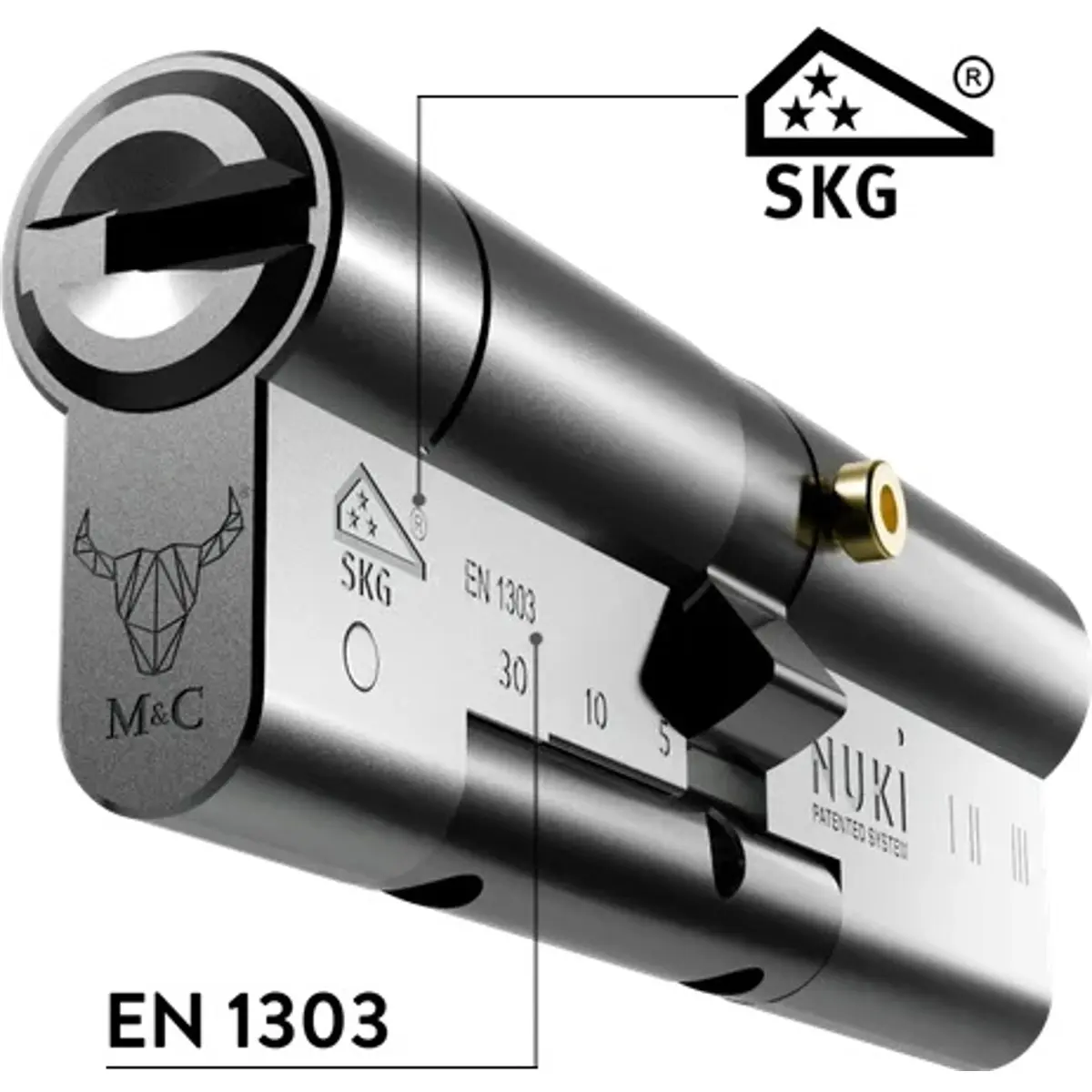 Desenvolvido em parceria com a M&C, especialista líder em tecnologia de segurança. Cumpre a mais elevada classe de segurança SKG e a certificação EN 1303.
