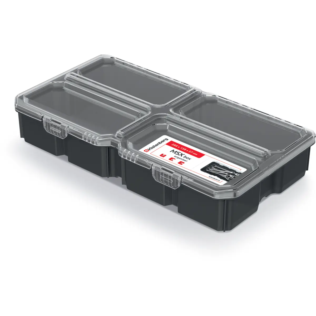 O KMXB3015 é um recipiente prático e funcional, concebido como um organizador de ferramentas. Resistente a impactos mecânicos.