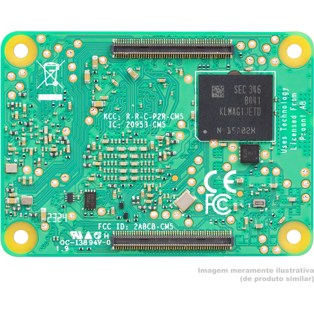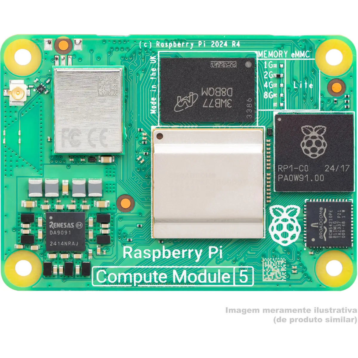 Este modelo em especifico, o CM5108032, oferece conectividade Wireless, com Wi-Fi® dual-band e Bluetooth 5.0, para além de incluir 8GB de memória RAM LPDDR4 (com ECC) e 32GB de armazenamento Flash eMMC. A presença do módulo wireless, totalmente certificado, garante conectividade robusta e confiável, enquanto a opção de usar uma antena externa ou a PCB trace, oferece versatilidade adicional.