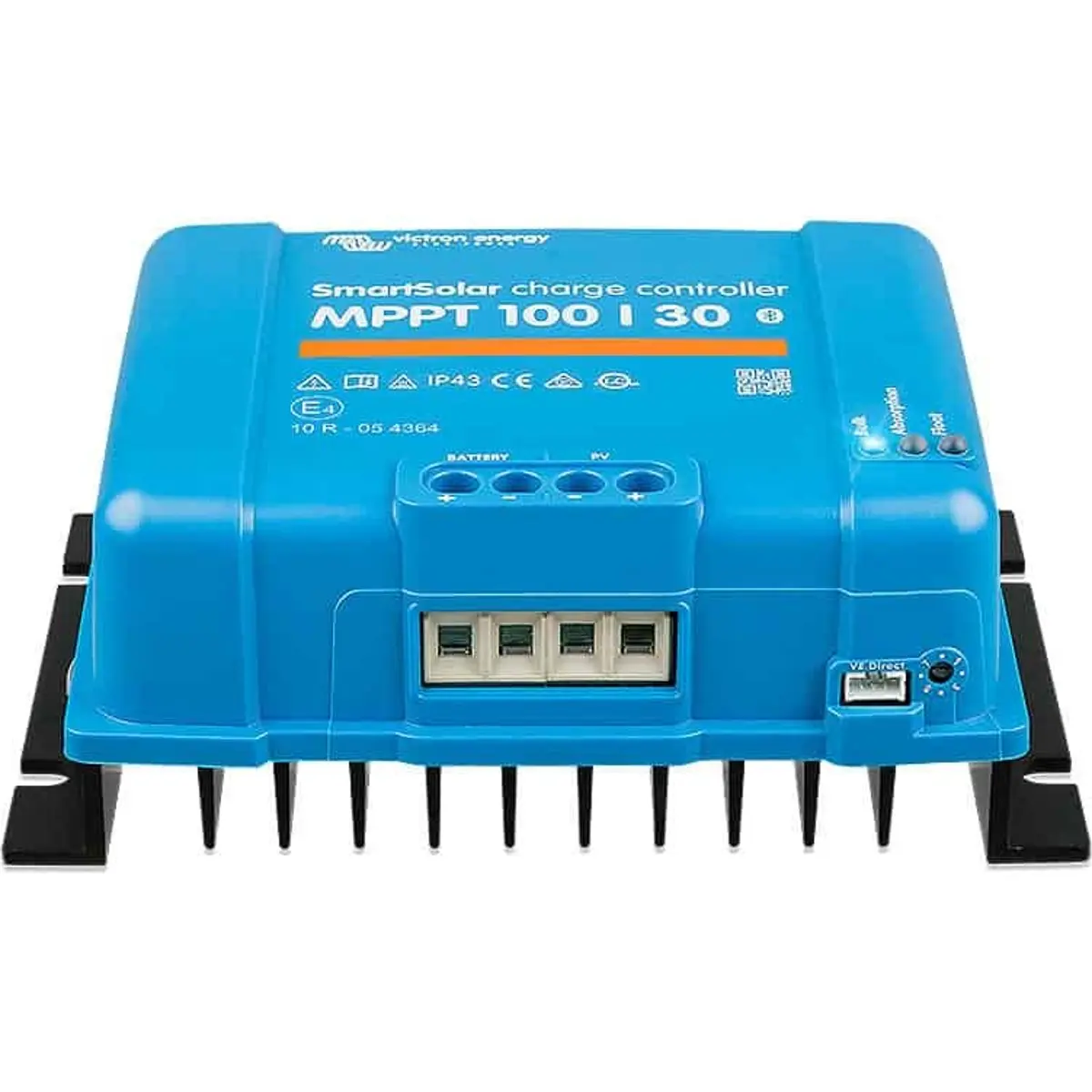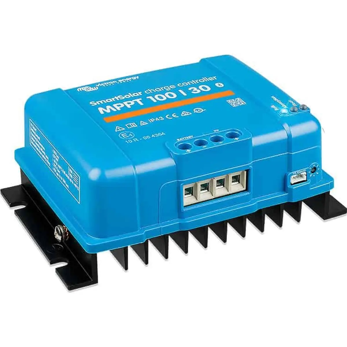 O Victron Energy SmartSolar MPPT 100/30 (SCC110030210) é um controlador de carga solar de alto desempenho, projetado para maximizar a eficiência na colheita de energia. Com tecnologia MPPT ultrarrápida, é especialmente eficaz em condições de luz variável, aumentando a produção de energia em até 30% face a controladores PWM. Possui integração Bluetooth Smart para configuração e monitorização sem fios, proteção eletrónica avançada contra sobreaquecimento, curto-circuitos e polaridade inversa, além de sensores para compensação térmica. Compacto e eficiente, suporta baterias descarregadas e oferece flexibilidade com algoritmos de carga programáveis. Ideal para sistemas solares avançados e exigentes.