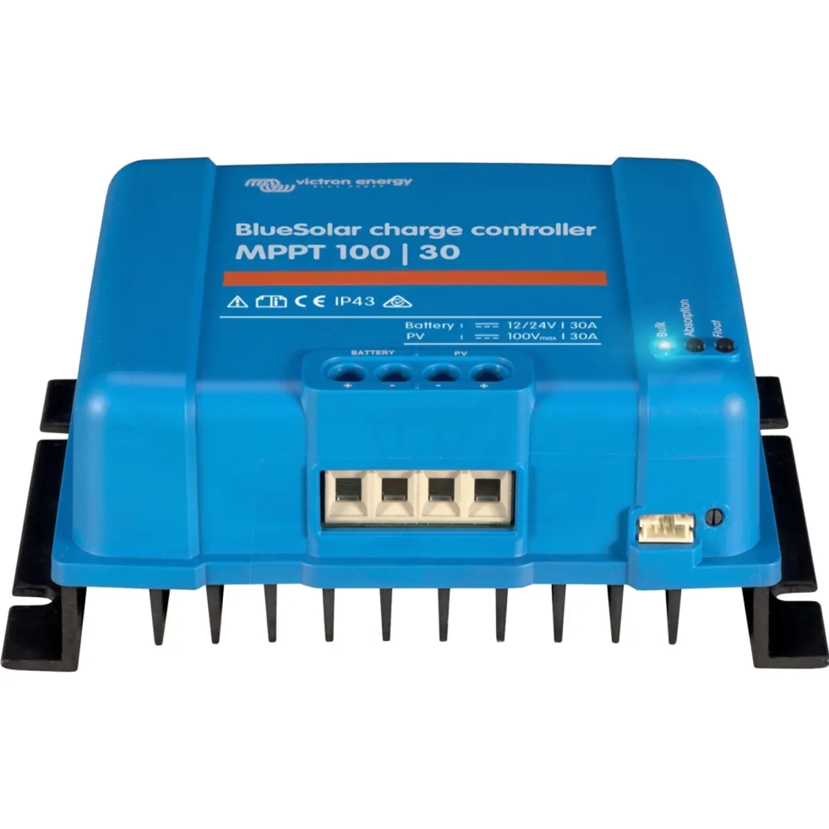 O BlueSolar MPPT 100/30 é um controlador de carga solar avançado, projetado para otimizar a recolha de energia dos painéis solares e o controlo eficiente do carregamento de baterias. Com tecnologia MPPT ultrarrápida, garante máxima eficiência, mesmo em condições de luz variável ou sombreamento parcial. Oferece proteção eletrónica avançada, um algoritmo de carga totalmente programável e monitorização em tempo real via dispositivos GX ou dongle Bluetooth. Ideal para prolongar a vida útil das baterias e garantir carregamento seguro e eficaz.