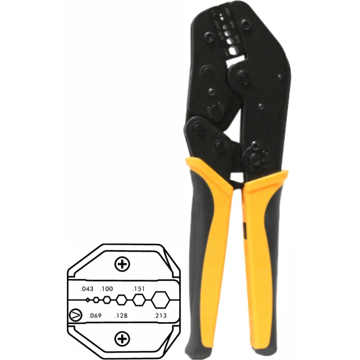 > polegadas: 0,043" - 0,069" - 0,100" - 0,128" - 0,151" - 0,213"