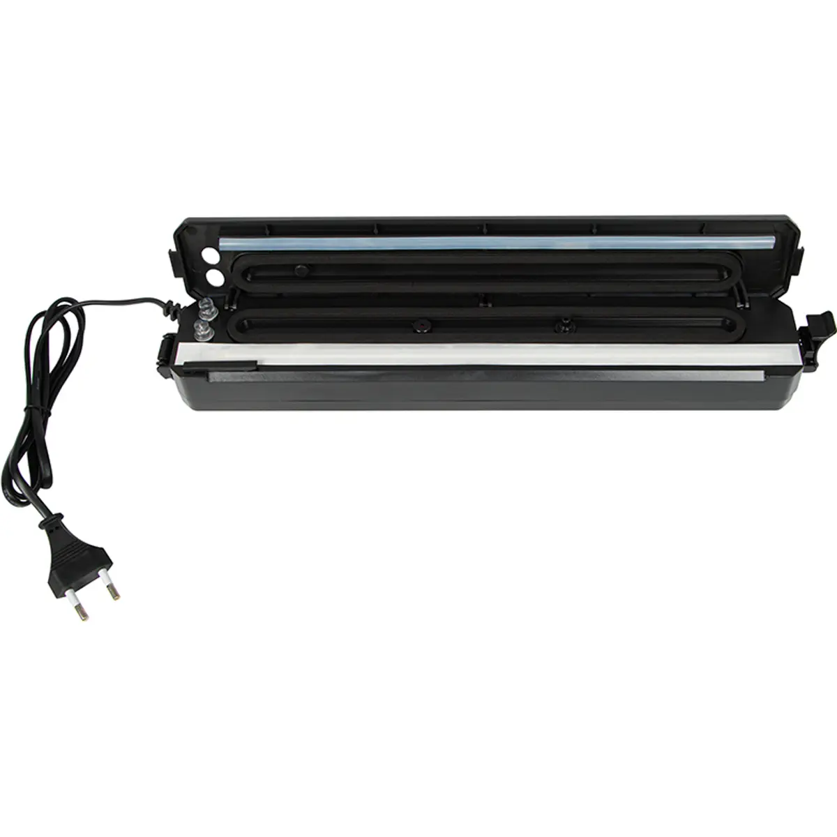 Seladora a vácuo compacta, com alimentação AC 220-240V / 50-60Hz e 70W. Remove o ar de embalagens para prolongar a frescura dos alimentos e reduzir o crescimento de microrganismos aeróbios. Possui vácuo de até 49 kPa e largura de selagem de 28 cm, ideal para sacos plásticos e preparação de refeições. Leve (0,6 kg) e com dimensões de 370 x 50 x 40 mm, facilita o armazenamento. Inclui 10 sacos de vácuo para começar a usar de imediato.