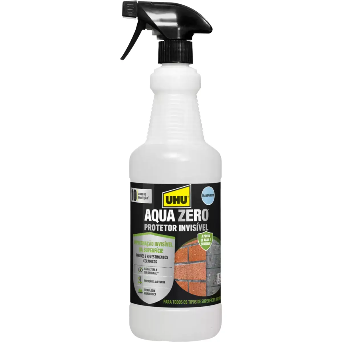 UHU Aqua Zero® Protetor Invisível: um protetor de alta performance que torna as superfícies tratadas impermeáveis à água e à sujidade, sem alterar a cor e mantendo a permeabilidade ao vapor. Proporciona uma proteção duradoura, melhorando a capacidade de isolamento e contribuindo para a poupança de energia.