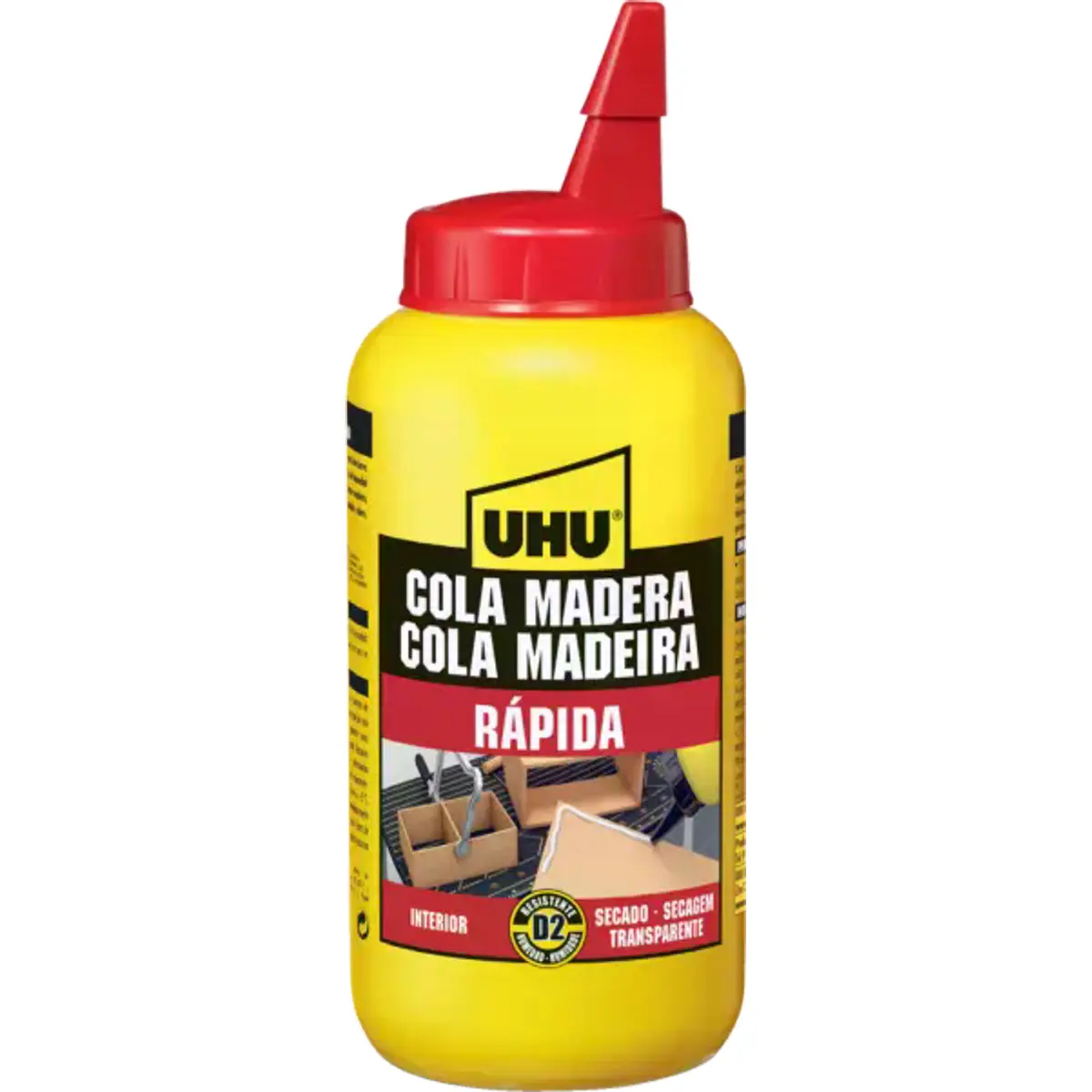 UHU Madeira Express: adesivo de madeira branco de alta qualidade, rápido (4 minutos de secagem) e resistente à humidade (EN 204 D2) para uso interno. Seca transparente e é mais forte que a própria madeira. Ideal para colagem de praticamente todas as madeiras duras, macias e exóticas.