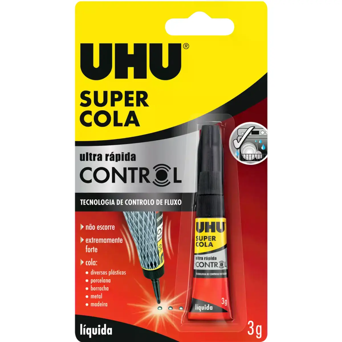 UHU SUPER COLA CONTROL: super cola líquida extremamente rápida e forte com Tecnologia Direct Stop (controlo de fluxo), que evita o desperdício e proporciona um controlo preciso. Fácil de usar, limpa e resistente à água e à máquina de lavar loiça.