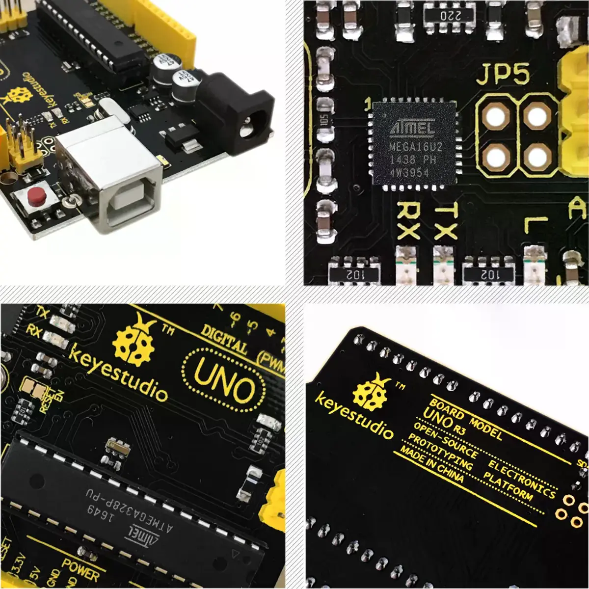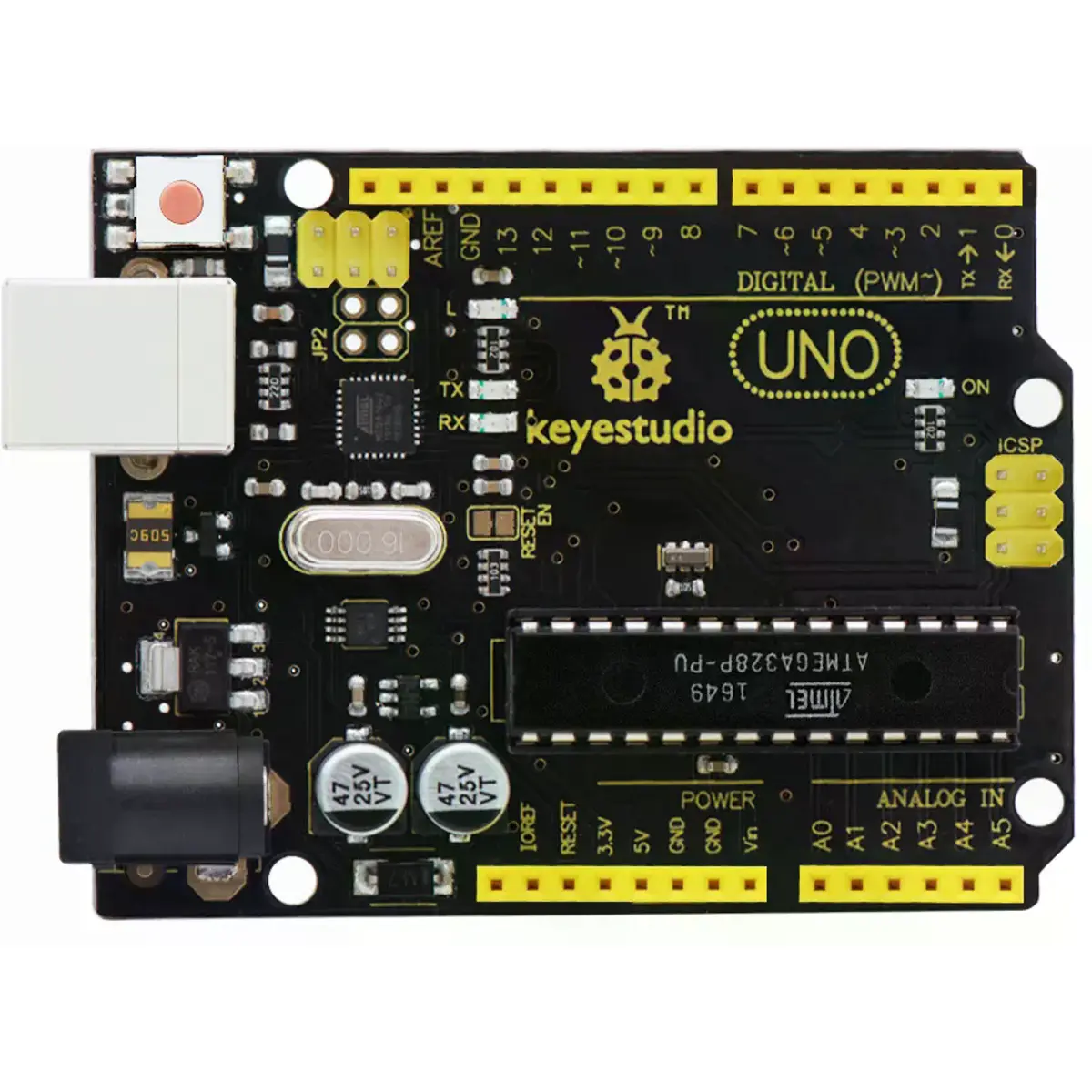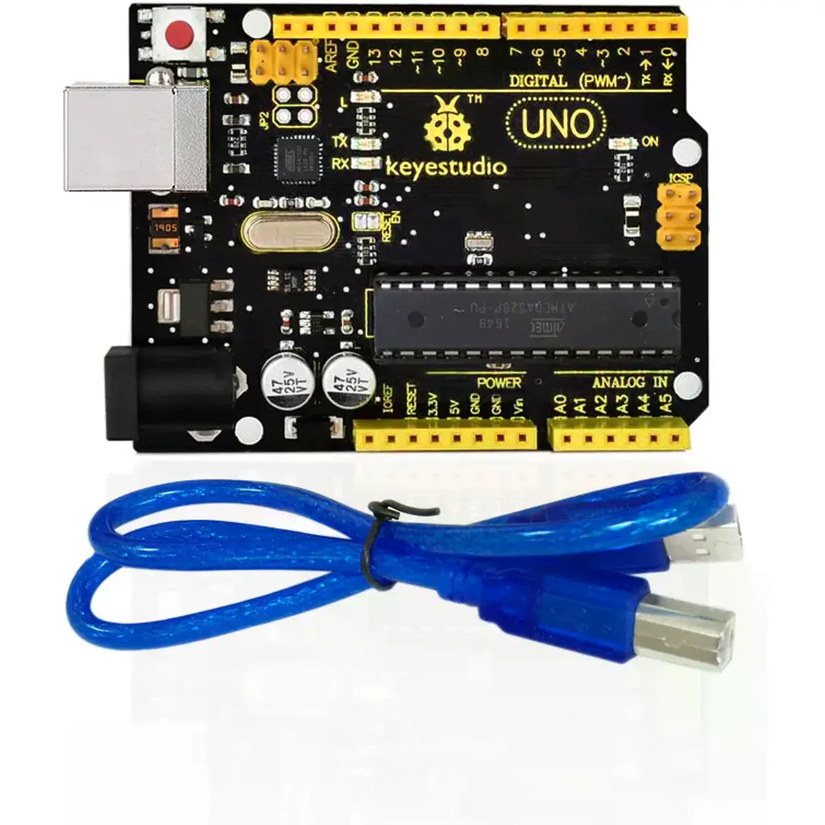 keyestudio Uno R3 é uma placa de microcontrolador baseada no ATmega328 (datasheet), totalmente compatível com ARDUINO UNO REV3.