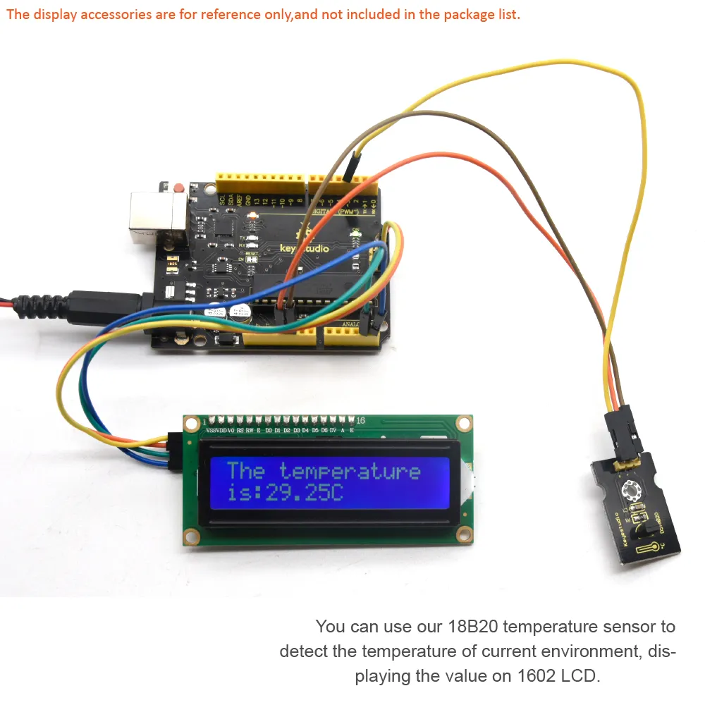 O DS18B20 é um sensor de temperatura digital, ideal para medições de temperatura ambiental. Possui uma faixa de temperatura de -55 a +125 ℃ e uma resolução de temperatura de 0,5 ℃. Além disso, suporta redes em malha multiponto para medições de temperatura em vários pontos.