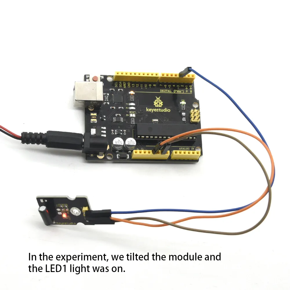 O Tilt Sensor é um interruptor de inclinação digital, ideal para detetar a orientação ou inclinação. Este sensor é pequeno, económico, de baixo consumo e fácil de usar. Ele pode ser utilizado como um sensor de inclinação simples.