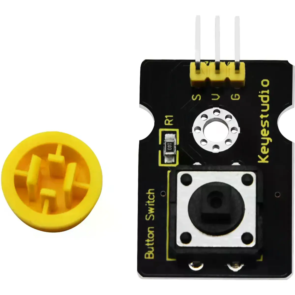 Este módulo é uma aplicação básica de botão. O interruptor de pressão momentânea normalmente permanece aberto. Quando pressionado, o circuito é conectado; ao ser solto, retorna ao estado de desconexão.