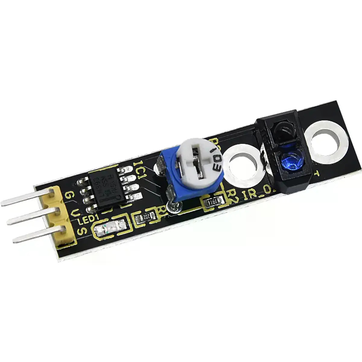 Este sensor de seguimento de linha pode detetar linhas brancas em fundo preto e linhas pretas em fundo branco. O sinal único de seguimento de linha fornece um sinal de saída TTL estável para uma linha mais precisa e estável. A opção de múltiplos canais pode ser facilmente alcançada instalando os sensores de robô de seguimento de linha necessários.