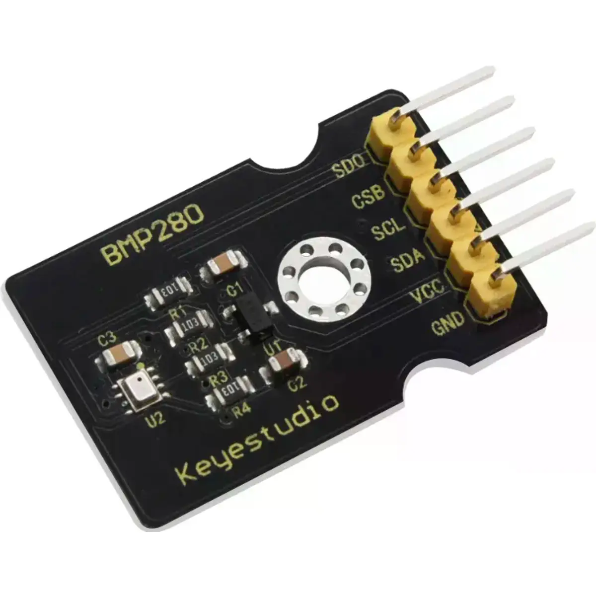 O módulo BMP280 utiliza principalmente o sensor BMP280, um sensor de temperatura e pressão atmosférica, que é um sensor de pressão absoluta do ar projetado para aplicações móveis.