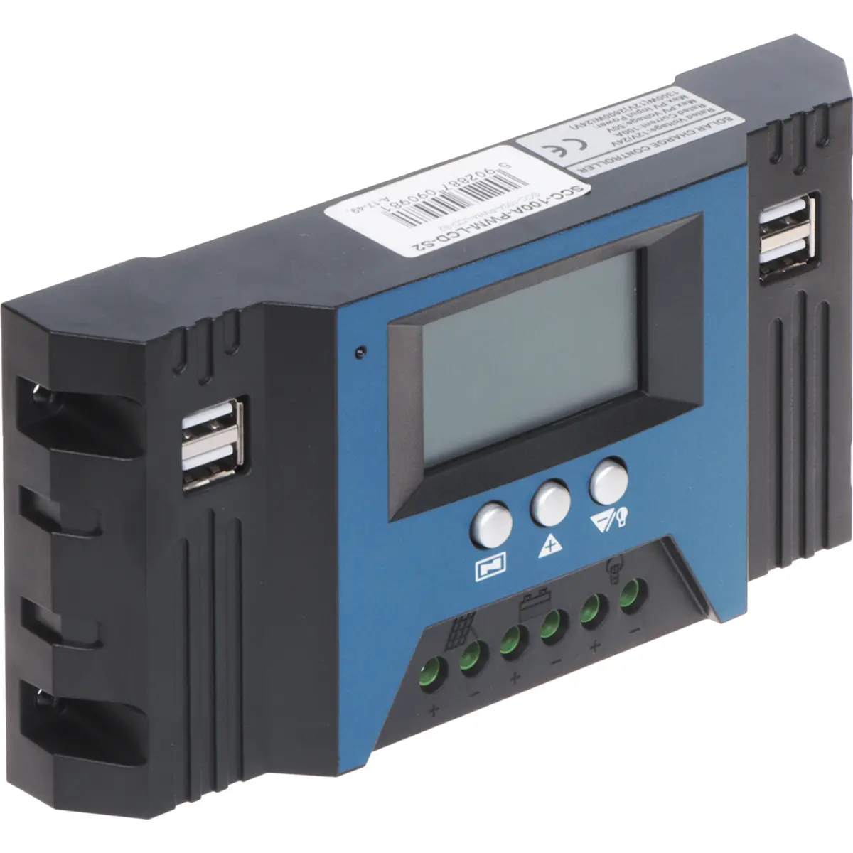 SCC-100A-PWM-LCD-S2 - Controlador de carga solar PWM (3 etapas) com LCD c/ saidas USB - 12/24VDC 30A