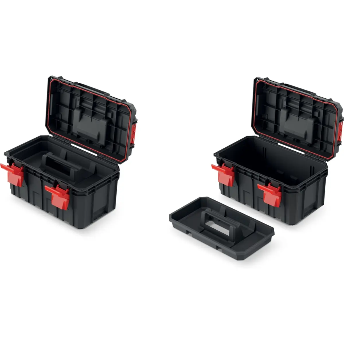 A caixa de ferramentas KXS4530 é uma caixa profissional, equipada com uma prateleira profunda (transportadora) para ferramentas, e uma vedação que assegura proteção contra poeiras e infiltrações. Esta caixa oferece um armazenamento e transporte seguro para ferramentas valiosas e especializadas. O produto cumpre com o grau de estanqueidade IP55. Os fechos em plástico ABS resistentes e os pinos metálicos nas dobradiças protegem a caixa contra aberturas acidentais.