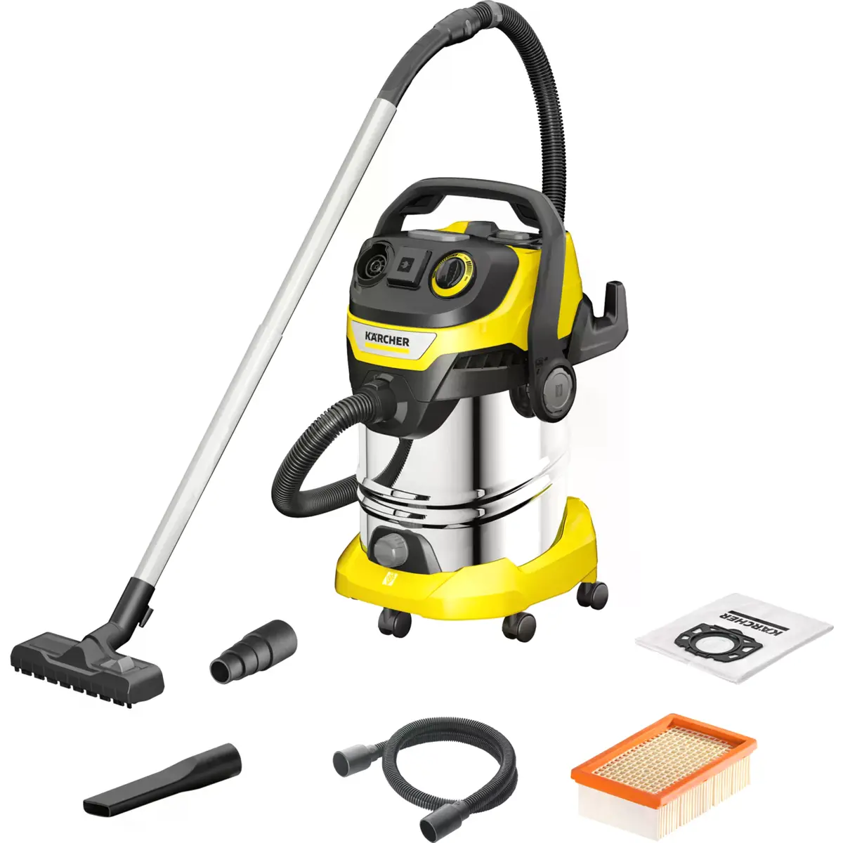 O WD 6 P S V-30/6/22/T combina sucção ultra-potente com eficiência energética. Com um reservatório de 30 litros em aço inoxidável, um filtro plano plissado de fácil remoção e sistema de limpeza automática, este aspirador é ideal para aplicações exigentes. Possui ainda uma função de sopro e uma tomada integrada para ligar ferramentas elétricas.