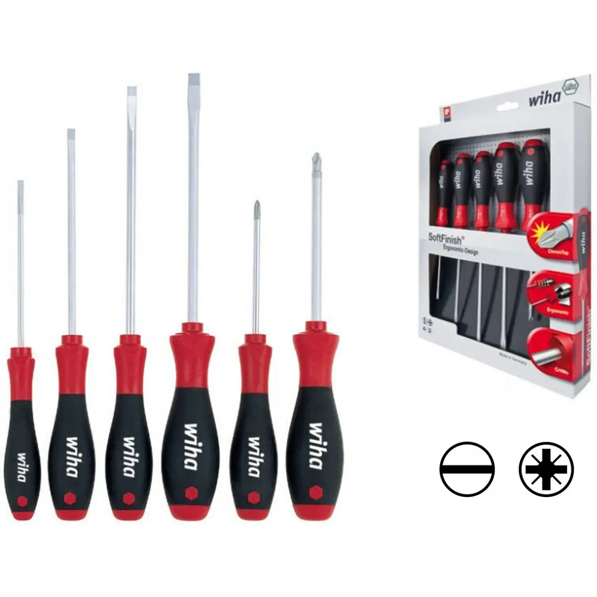 Chaves de parafusos Wiha SoftFinish® com design ergonómico para conforto e eficiência, com proteção contra rolagem.