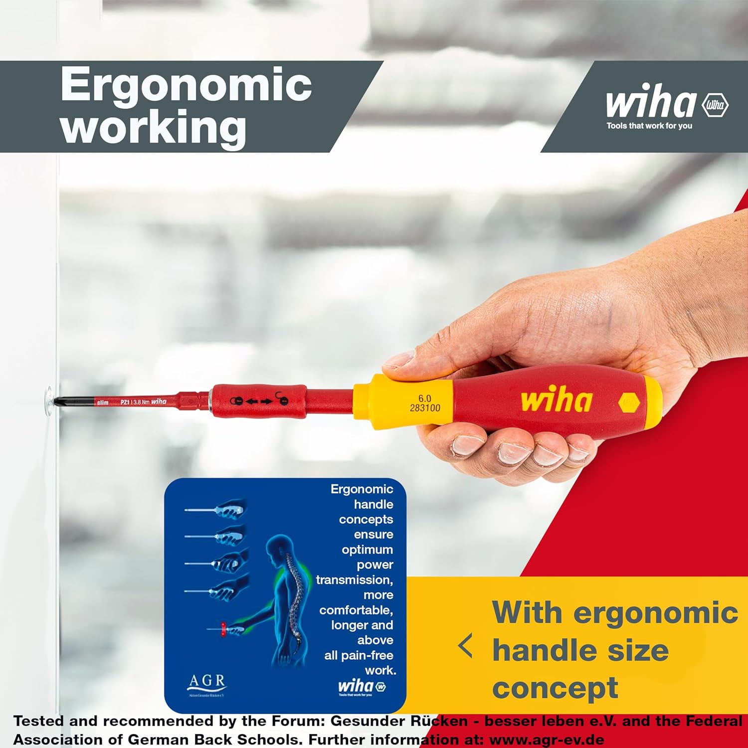 O conjunto Wiha SlimVario, com um cabo SoftFinish® e slimBits isoladas, é ideal para trabalhos elétricos até 1000V AC, garantindo segurança e precisão. Os slimBits possuem isolamento protetor moldado diretamente, certificado VDE e GS, oferecendo máxima proteção ao utilizador. Inclui um Busca-polos (110-250 V) e vem organizado numa bolsa resistente e durável, facilitando o transporte e o acesso rápido às ferramentas essenciais.