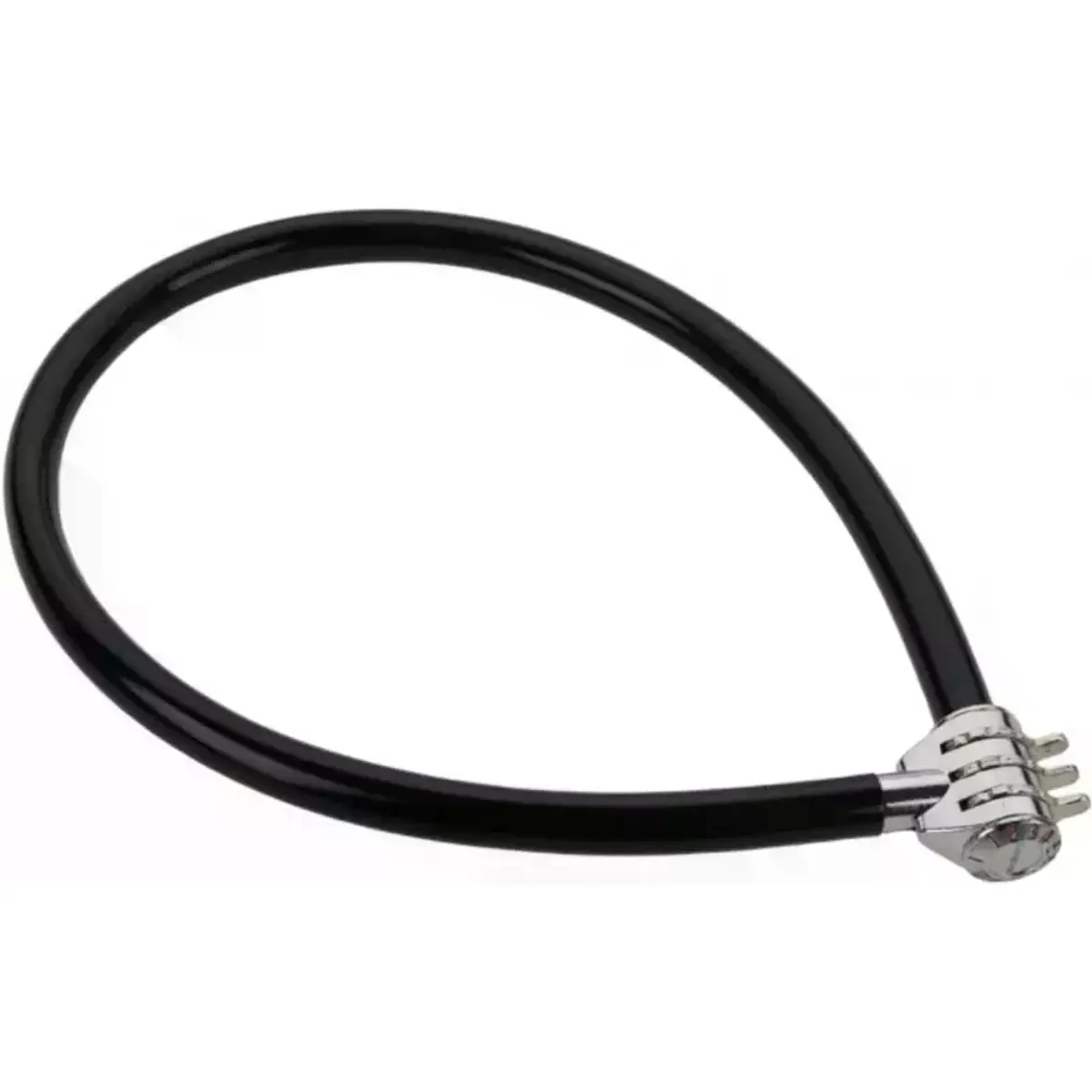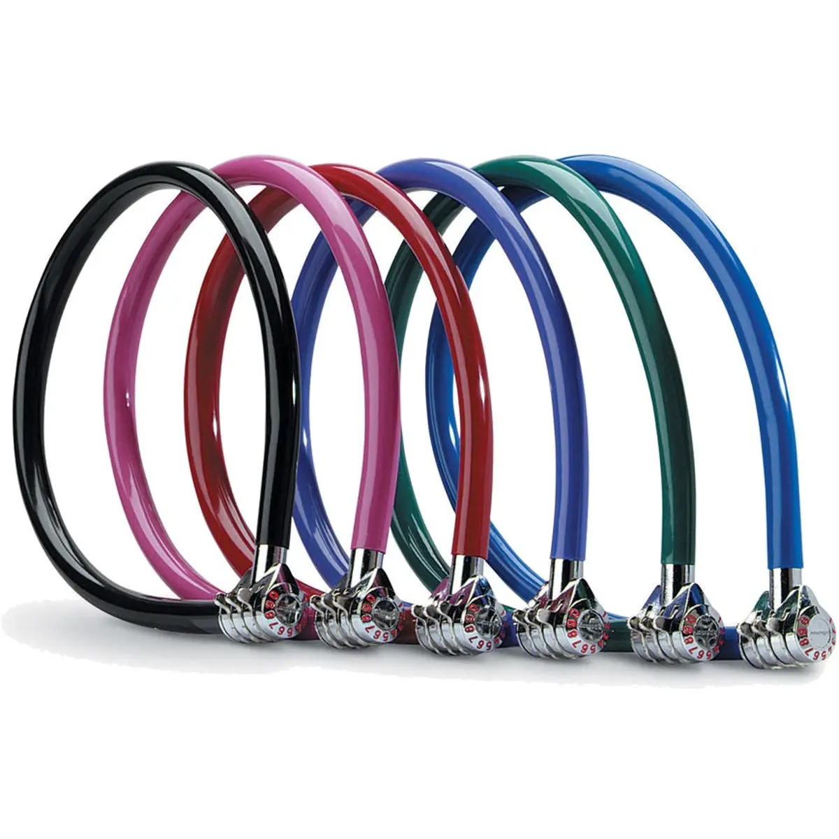 Cadeado de bicicleta com cabo de aço torcido de 6 mm e revestimento em vinil para reduzir riscos e aumentar a durabilidade. O cabo tem 55 cm de comprimento, facilitando o cadeamento de rodas ou guiador. A segurança é garantida por uma combinação fixa de 3 dígitos, sem necessidade de chave. Disponível em cores aleatórias (azul, vermelho, verde, roxo e preto), oferecendo opção prática e segura para uso urbano e de lazer.