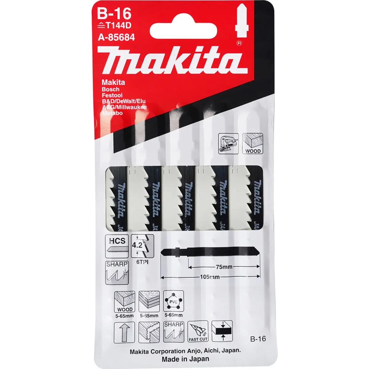 Estas lâminas são fabricadas em Aço Carbono (HCS), um material que resiste à flexão e, portanto, é mais adequado para cortar materiais mais macios, como madeira macia, plásticos macios e painéis de fibra de madeira.