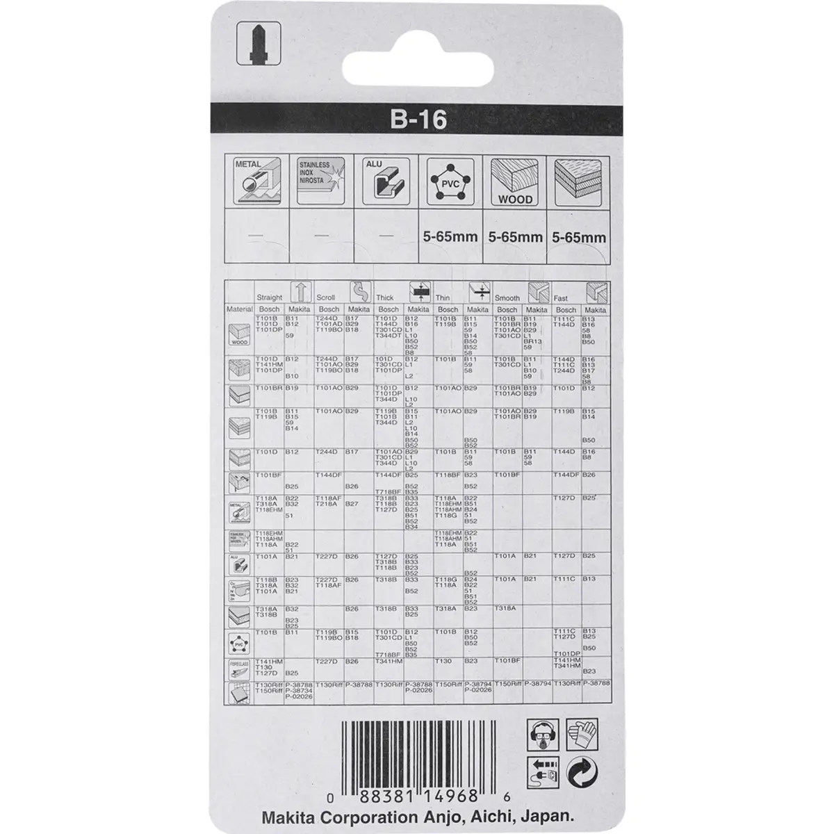 - Capacidade de corte em madeira: 5 - 65 mm