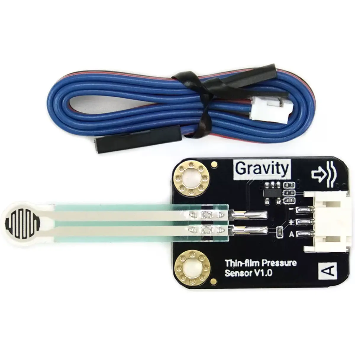 O Gravity: Sensor de Pressão de Filme Fino mede a pressão através da deformação de um material de filme flexível. À medida que a pressão aumenta, o filme deforma-se, gerando valores de saída analógicos mais elevados, enquanto pressões mais leves resultam em valores mais baixos. Este sensor é uma excelente ferramenta educativa para a exploração prática dos conceitos de medição de pressão. Com uma faixa de deteção de 20g a 6kg, é amplamente utilizado em cursos de ciência e engenharia, bem como em projetos DIY, proporcionando a estudantes e educadores uma forma acessível de compreender e demonstrar a tecnologia de deteção de pressão. O sensor pode ser facilmente ligado a controladores como Arduino e micro:bit.