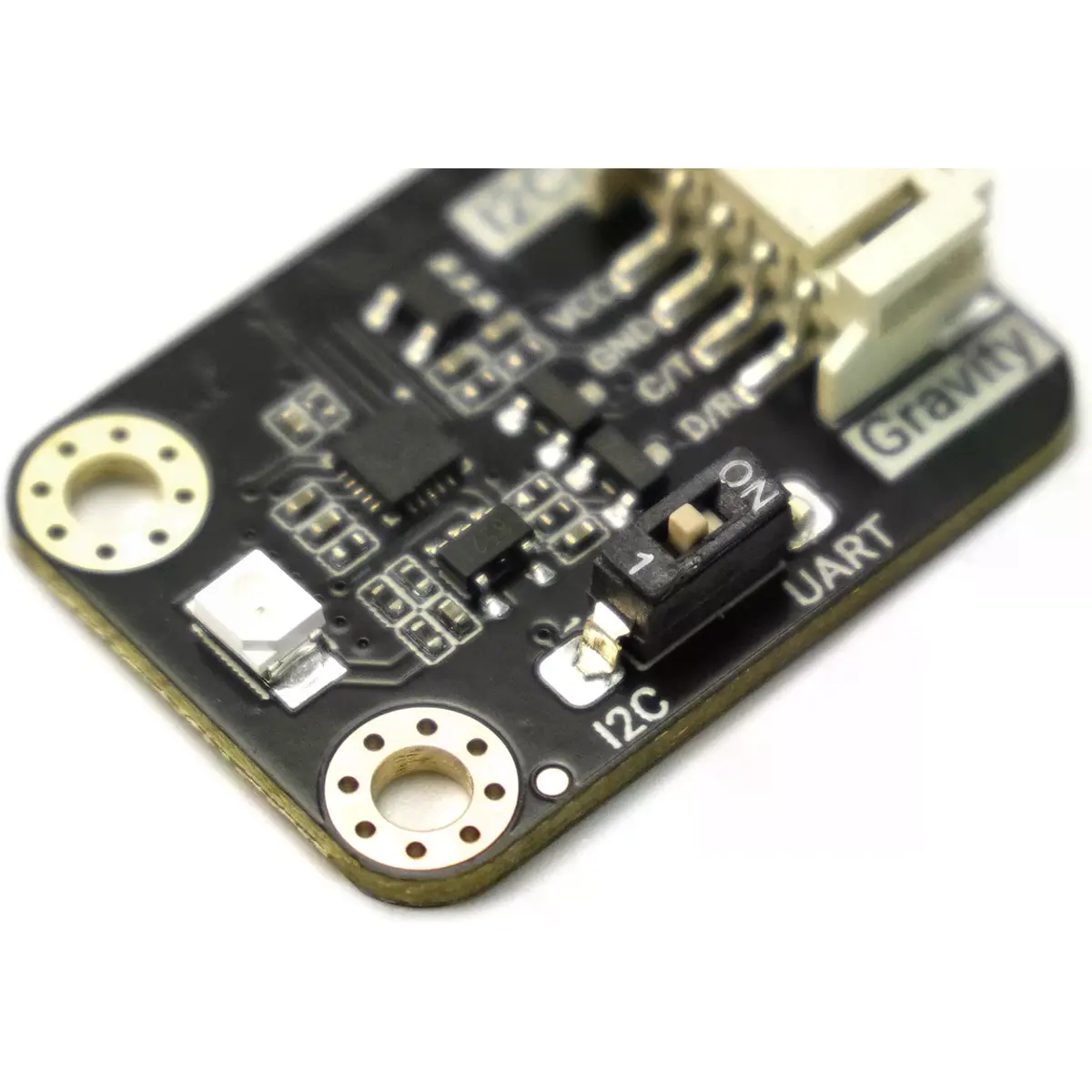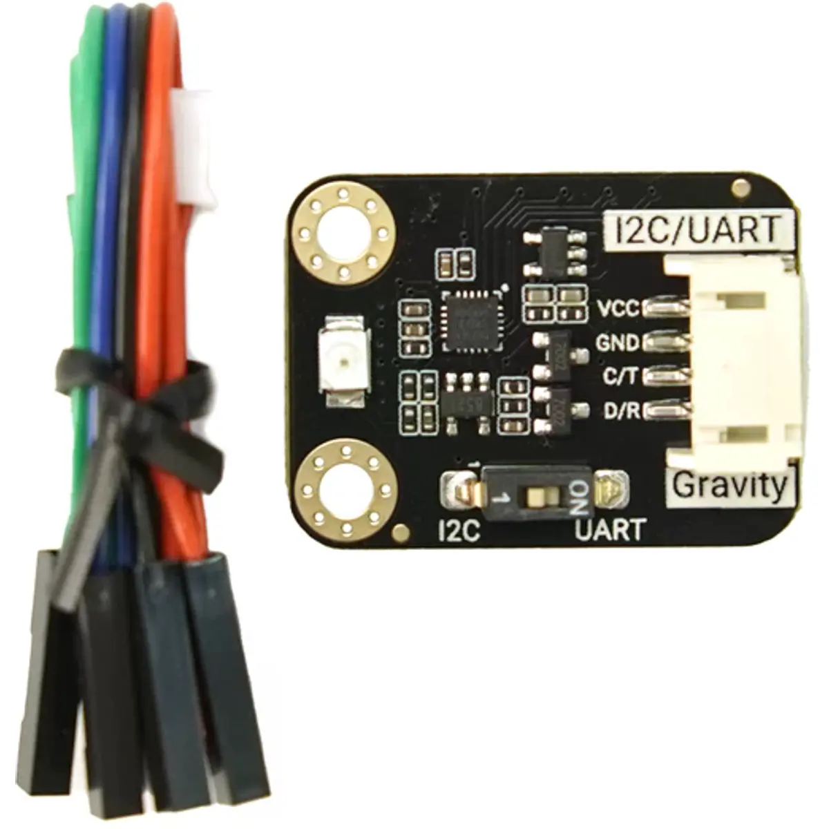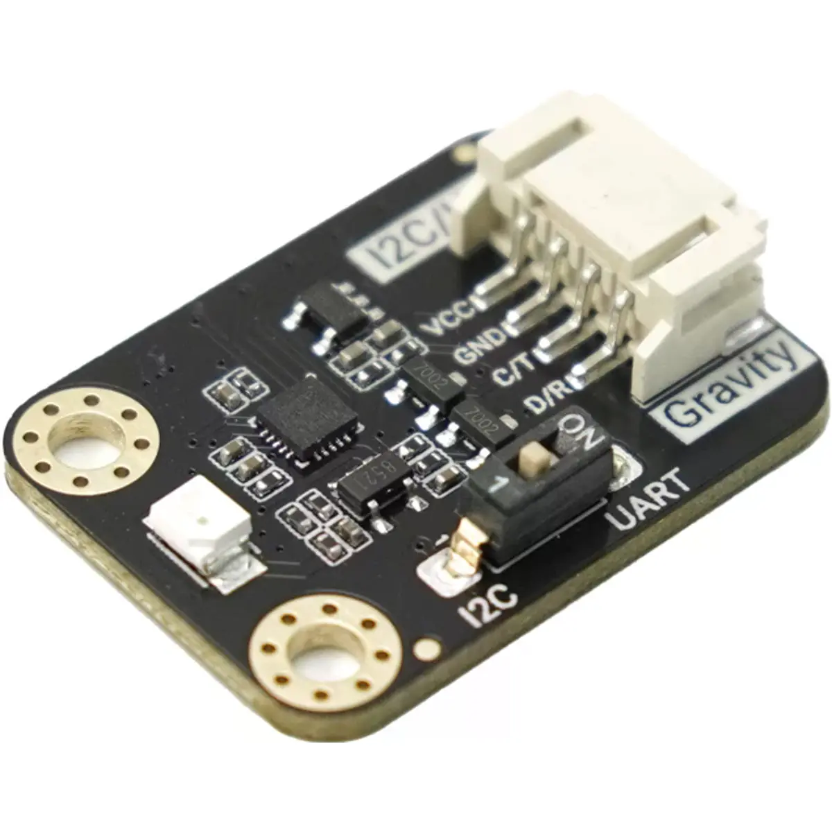 O sensor de índice UV Gravity é um dispositivo altamente sensível, projetado para medir a radiação ultravioleta (UV) na faixa de comprimento de onda de 240-370nm, que inclui os comprimentos de onda UVA, UVB e UVC. O sensor foca principalmente na faixa UVB, tornando-o ideal para aplicações como avaliação da saúde da pele e monitorização do índice UV. Este dispositivo fornece diretamente o índice UV de 0 a 11 e oferece um aviso de risco de dano de 1 a 5, eliminando a necessidade de cálculos adicionais. É versátil, suportando métodos de comunicação I2C e UART, garantindo compatibilidade com uma ampla gama de sistemas de controlo mestre.