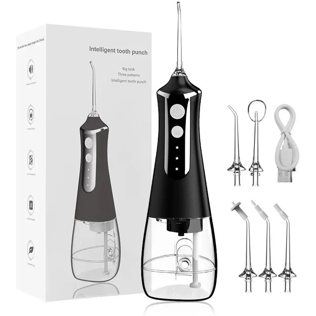 Porque cada boca é única, o irrigador dentário está equipado com cinco bicos intercambiáveis e três tampas de bicos para se adaptar a diferentes áreas orais e necessidades do utilizador. Quer seja utilizado individualmente ou em família, o seu design leve e compacto torna-o o companheiro de viagem perfeito. Com três modos e funcionamento silencioso, este irrigador responde a uma variedade de necessidades de higiene oral.