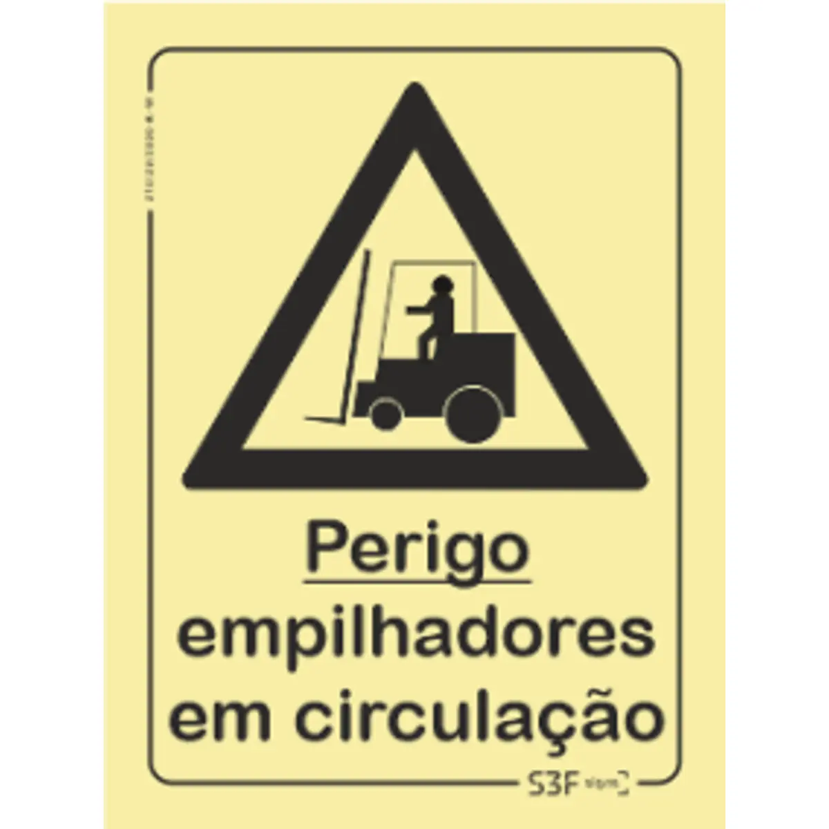 Placa de sinalização fotoluminescente ''Perigo empilhadores em circulação'' - 150x200mm
