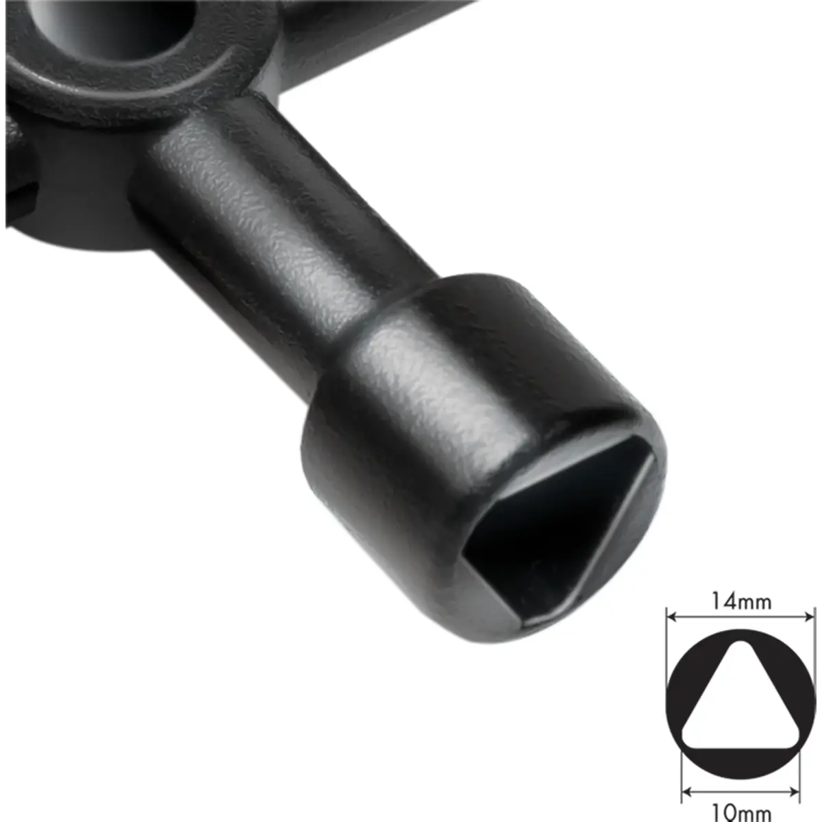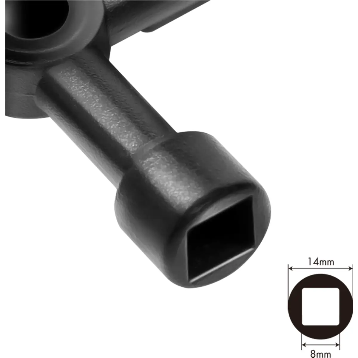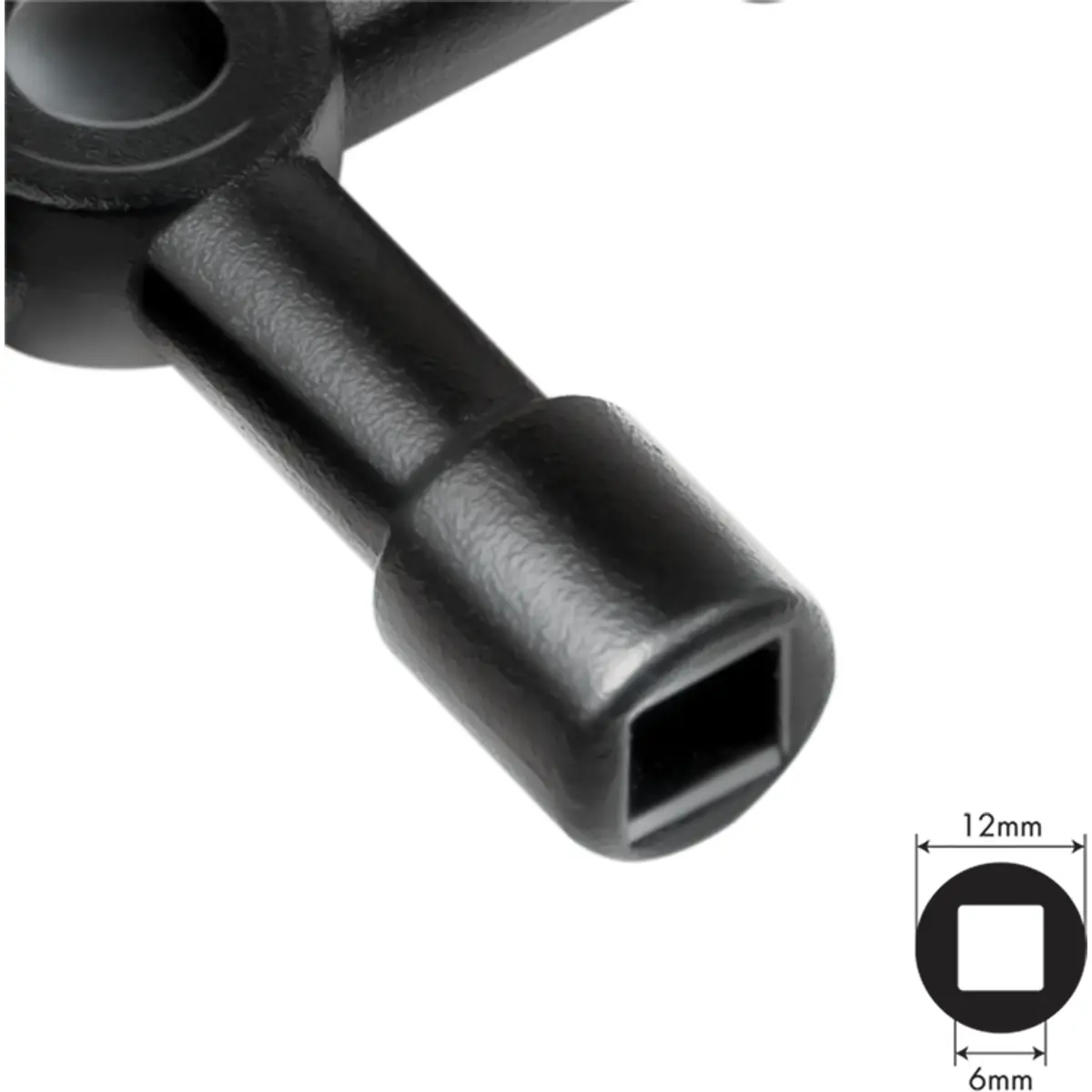 Chave de armário de distribuição com 4 funções, fabricada em liga de zinco, acabamento preto, oferecendo durabilidade em fechaduras para armários de distribuição. Possui capacidades: quadrada 6 mm e 8 mm, ranhura dupla a 5,5 mm e triangular a 10 mm. Ideal para sistemas que requerem múltiplos formatos de chave, garantindo compatibilidade e robustez para aplicações industriais e domésticas.