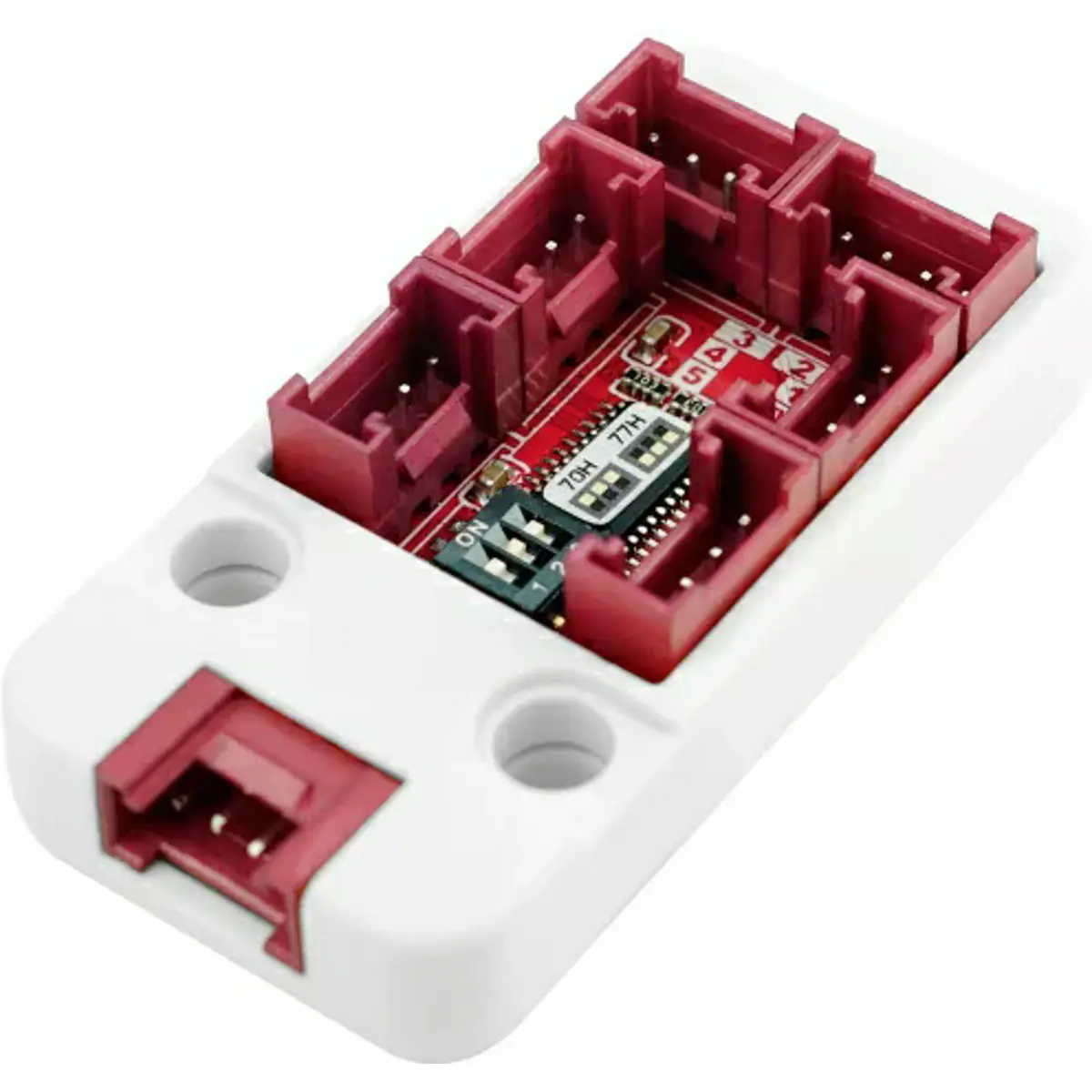 A Unit PaHub v2.1 é uma unidade multiplexadora I2C que utiliza o chip PCA9548AP, permitindo expandir uma única interface I2C para seis canais. Através da seleção de canais, permite que múltiplos dispositivos com o mesmo ou diferentes endereços I2C coexistam no mesmo barramento I2C, alternando via polling de canais. O módulo inclui um DIP switch integrado para facilitar o ajuste do endereço I2C da Unit PaHub v2.1, permitindo a cascata de múltiplas unidades para conectar ainda mais dispositivos I2C. Em comparação com a versão anterior, oferece maior flexibilidade e escalabilidade em cenários de uso simultâneo de vários dispositivos I2C. Este produto é ideal para aplicações que exigem a utilização simultânea de múltiplos dispositivos I2C.