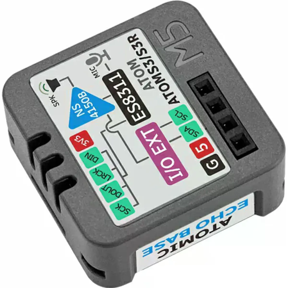 O Atomic Echo Base é uma base de reconhecimento de voz projetada especificamente para a série M5 Atom. Utiliza uma solução integrada com o decodificador de áudio mono ES8311, microfone MEMS e amplificador de potência NS4150B. O ES8311 oferece resolução de áudio de 24 bits e uma taxa de amostragem de 16KHz a 64KHz, suportando comunicação I2S e processamento de áudio de alta fidelidade. O microfone MEMS, com alta relação sinal-ruído (SNR), é ideal para reconhecimento de fala automático, enquanto o alto-falante embutido garante uma saída de áudio eficiente. O dispositivo suporta comunicação full-duplex, permitindo transmissão e recepção de voz simultâneas, aprimorando recursos interativos como reconhecimento de fala, ativação por voz e reprodução de áudio. É ideal para aplicações em casas inteligentes e educação.