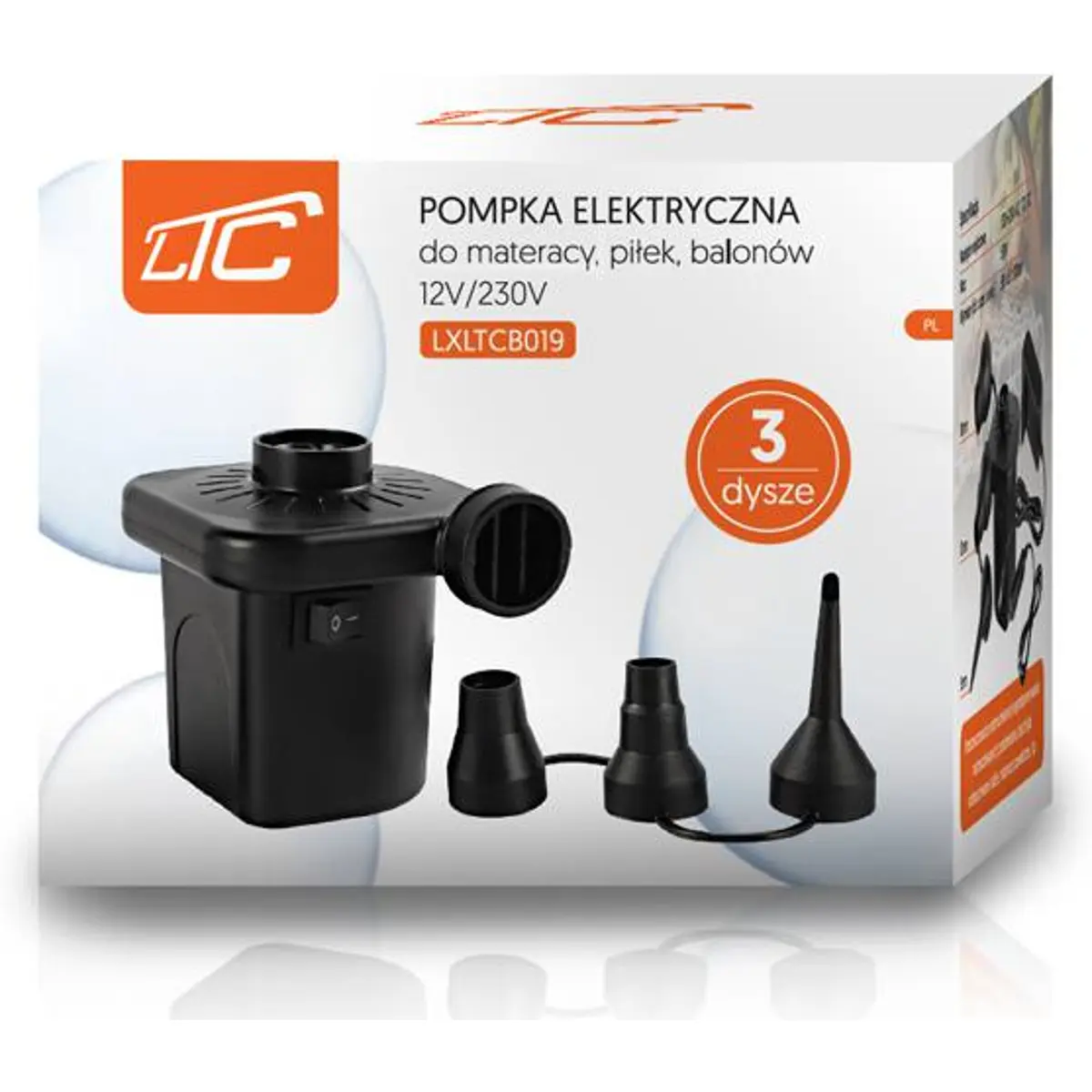 LTC - Bomba de ar 12V/230V 50W p/ colchões e insufláveis (400 L/min)