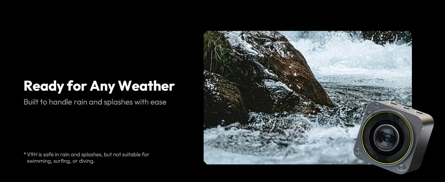 ◾ A Botslab V9H é resistente à chuva e salpicos, mas não é adequada para natação, surf ou mergulho.