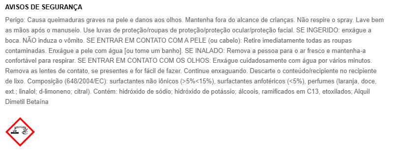 - Fórmula Alcalina – Remove eficazmente a sujidade sem danificar as superfícies.