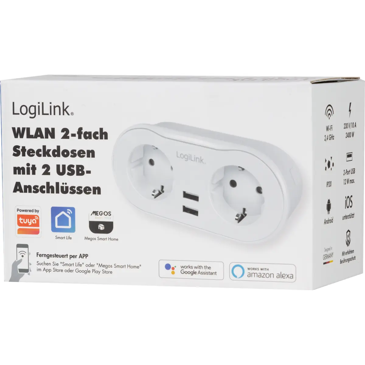 Esta tomada inteligente permite o controlo de dispositivos via Wi-Fi através da app gratuita Smart Life ou Megos Smart Home. Com ela pode definir horários ou temporizadores para ligar/desligar dispositivos elétricos em casa, tudo a partir do seu telemóvel, em qualquer lugar.