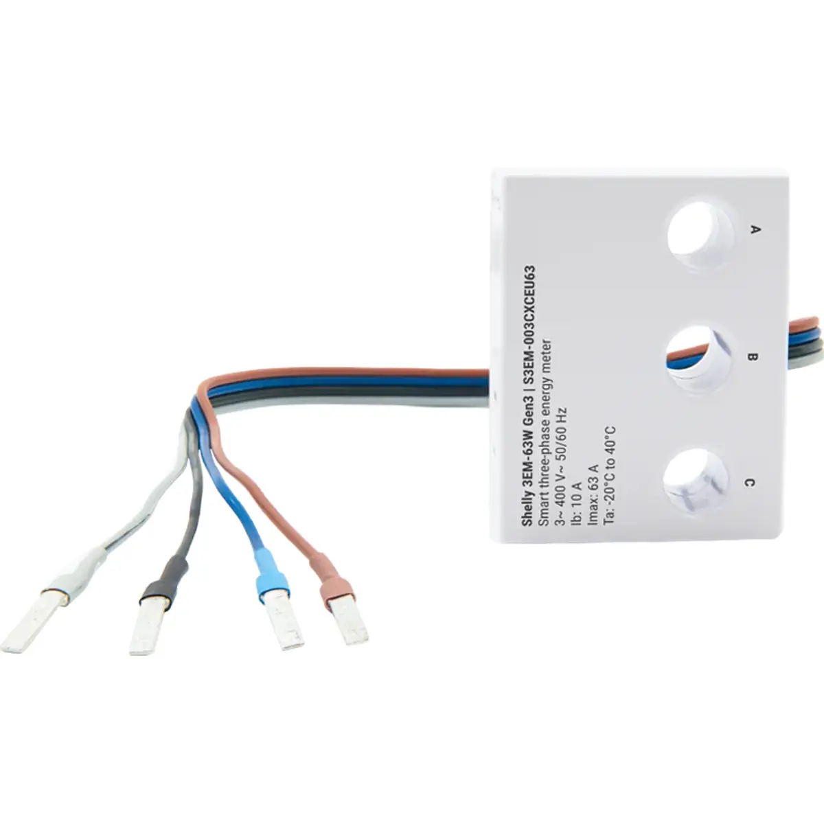 NOTA: Também existe uma versão com terminais em vez de fios (o Shelly 3EM-63T Gen3)