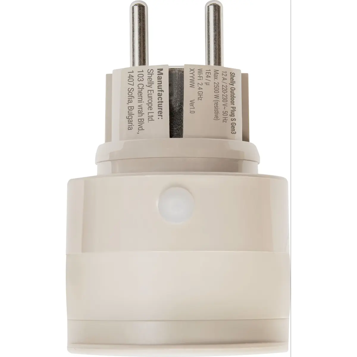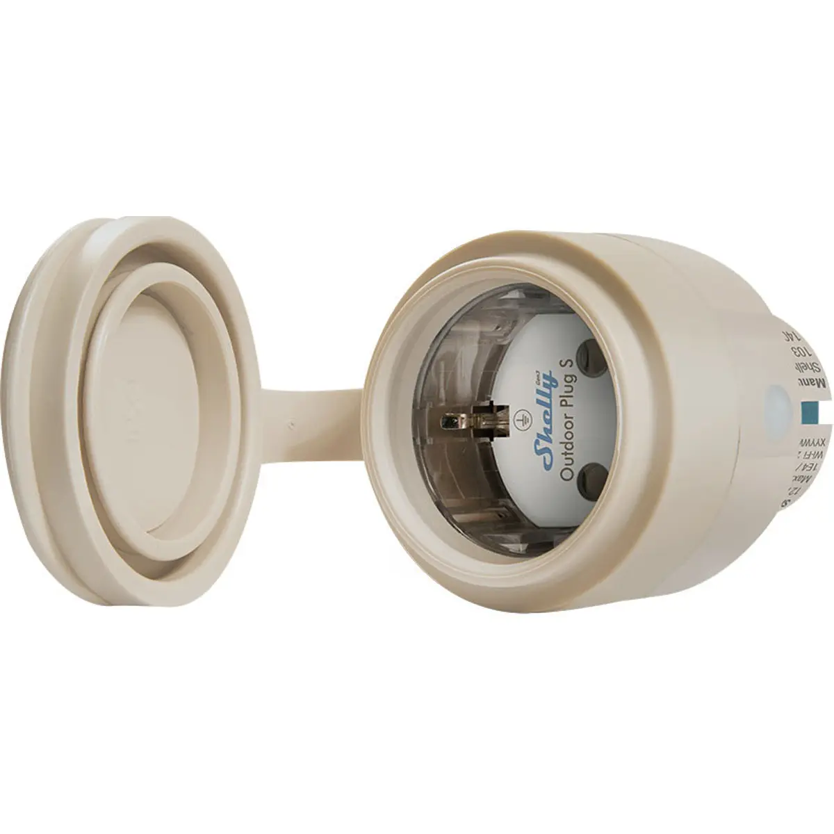 Shelly Outdoor Plug S Gen3 - Tomada inteligente WiFi Matter c/ medidor de consumo e luz LED 230VAC (12A 2500W) - p/ Exterior - Bege