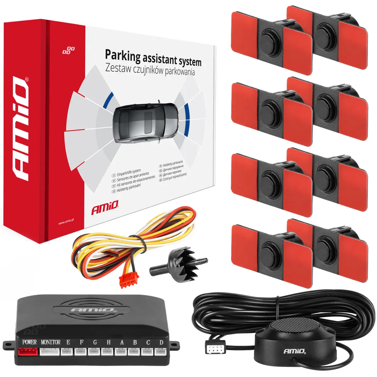 AMiO - Sensores de estacionamento (8 sensores) compactos para automóvel [sonoro] - Ø16.5mm - Preto