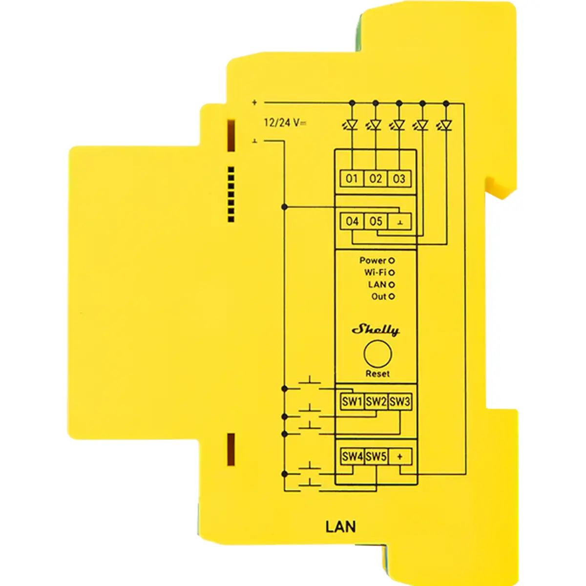 O Shelly Pro RGBWW PM é um controlador inteligente de cinco canais para iluminação LED, projetado para montagem em calha DIN. Ideal para instalações profissionais ou residenciais, permite o controlo de fitas LED RGB, RGBW, CCT (branco ajustável) ou até cinco circuitos de luz independentes, com perfis de funcionamento configuráveis. Oferece conectividade LAN, Wi-Fi e Bluetooth, medição de energia em tempo real e suporte para scripting e automação local, sem necessidade de hub.