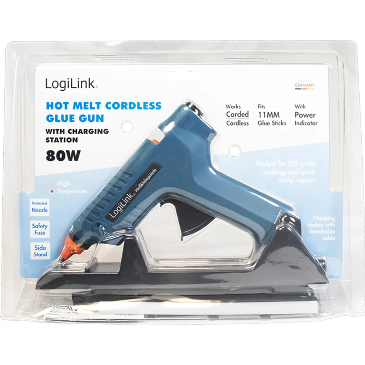 Logilink WZ0052 - Pistola de cola quente 80W (Ø11mm) sem fios c/ base de aquecimento