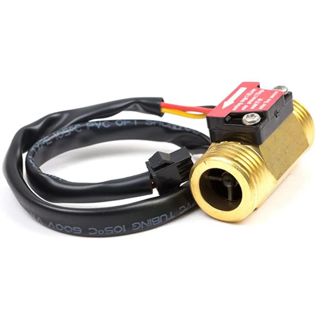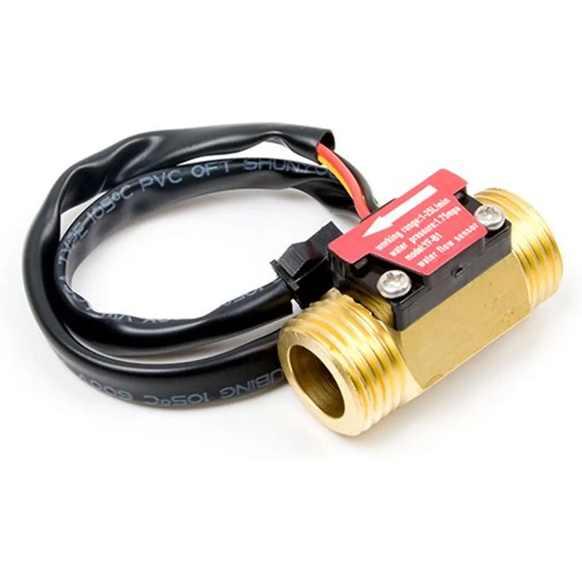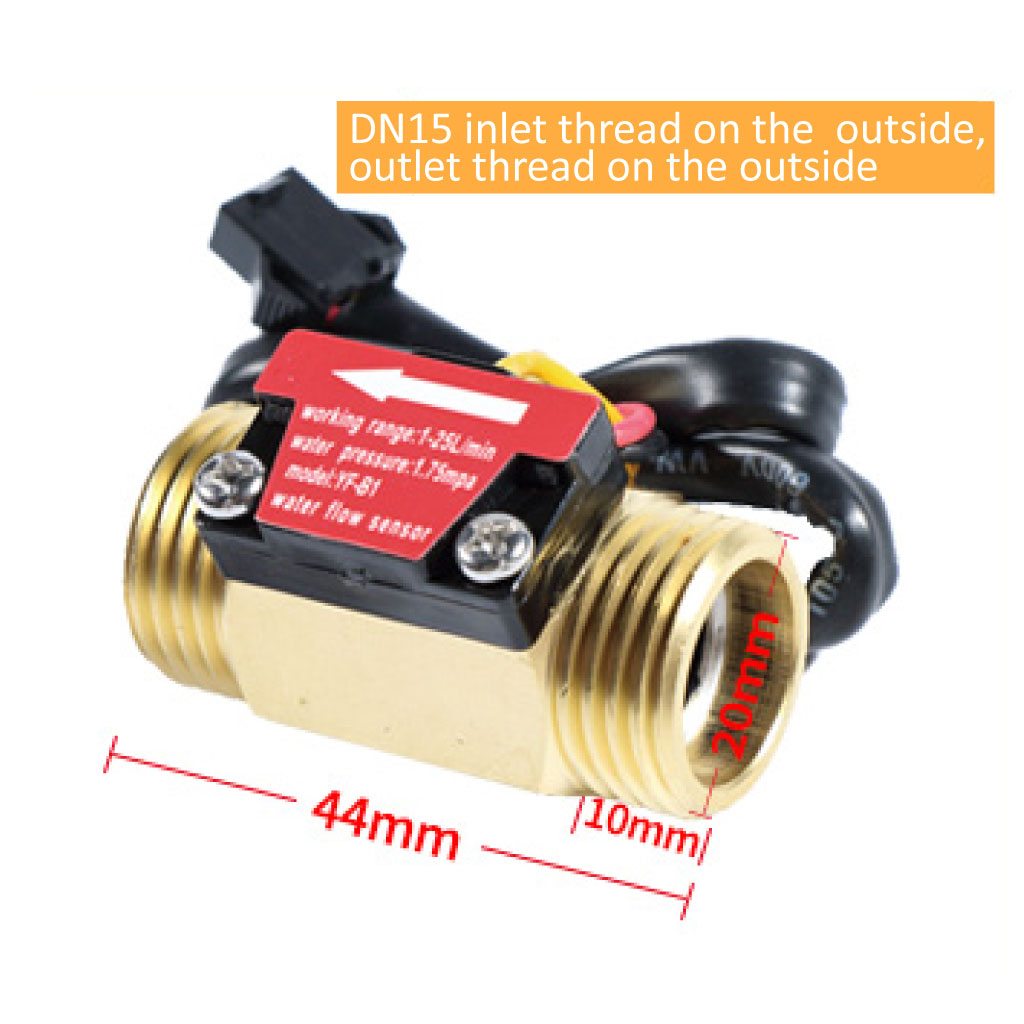 Este sensor de fluxo de água é composto por um corpo em cobre, um rotor e um sensor de efeito Hall. Quando a água flui através do rotor, este começa a girar, e a sua velocidade varia conforme a taxa de fluxo. O sensor de efeito Hall gera um sinal de pulsos correspondente a essa variação. Este sensor é ideal para detetar fluxo em dispensadores de água ou máquinas de café. Comparado com o corpo de plástico, a vida útil do modelo em cobre é mais longa.